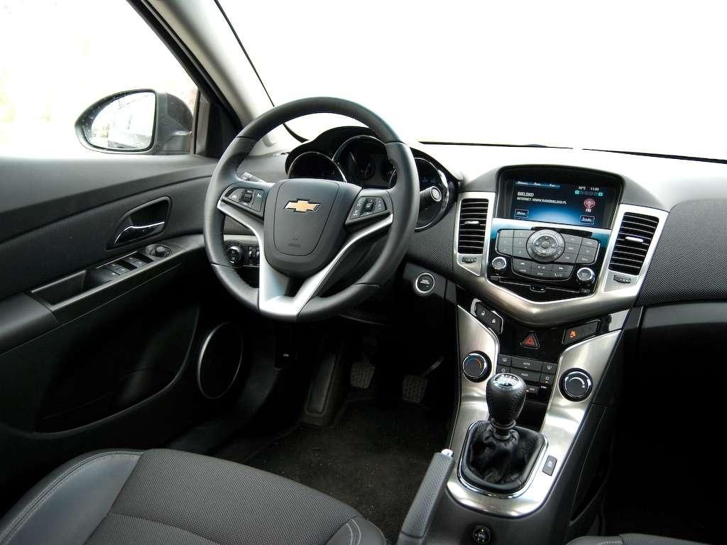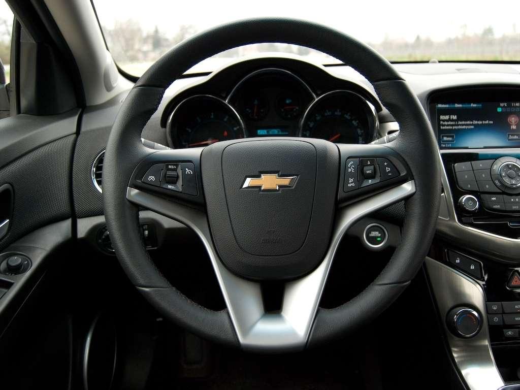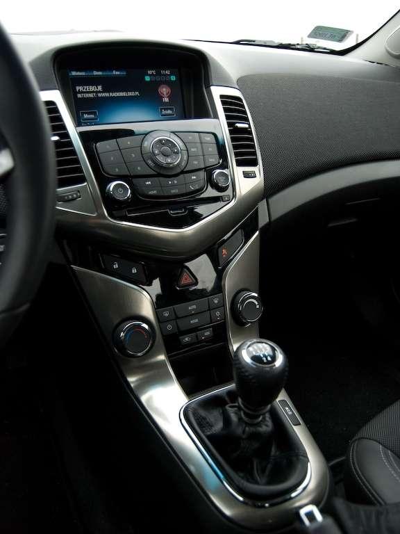 Płyta podłogowa to nie jedyna rzecz, jaką współdzieli z Astrą opisywany Chevrolet. Osoby który miały już styczność z produktem Opla, zauważą wewnątrz Cruza sporo zapożyczeń. Konsola środkowa może na początku nieco przerażać liczbą przycisków, ale podczas codziennej eksploatacji będziemy korzystać najwyżej z trzech z nich. Obsługa systemu multimedialnego wymaga przy pierwszym kontakcie chwili zastanowienia. Nawigacja jest bardzo dokładna i dostarcza ogromnej ilości informacji na temat okolicznych punktów POI. Po mapie poruszamy się używając wielokierunkowego „joysticka”. To jego jedyna funkcja – nie działa na ekranie radia czy ustawień.