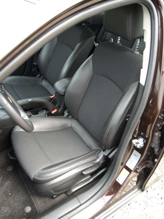 Nietypowym rozwiązaniem jest wykończenie kokpitu. Pokryto go bowiem materiałem, co w teorii ma nawiązywać do sportowych modeli tej marki. Plastiki użyte w kabinie są niezbyt wyszukane, twarde, ale odporne na zarysowania. Chromowane akcenty wokół tub wskaźników nie starają się nawet ukryć budżetowego pochodzenia. Na plus zaliczyć można jakość wykonania i spasowania poszczególnych elementów. Również w kwestii schowków nie będziemy narzekać. Grupa projektantów odpowiedzialna za ten aspekt całkiem dobrze wywiązała się ze swojego zadania – oprócz tradycyjnych skrytek w drzwiach i przed pasażerem, udało się wygospodarować jeszcze miejsce na drobiazgi przy drążku zmiany biegów, na podszybiu oraz pod regulowanym podłokietnikiem. Oczywiście do dyspozycji mamy dodatkowo dwa uchwyty na kubki.