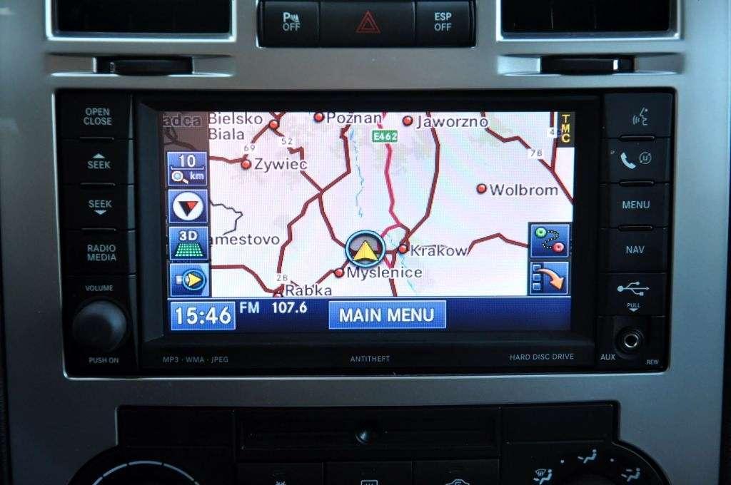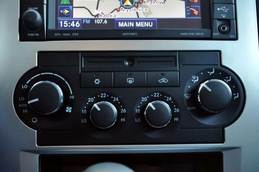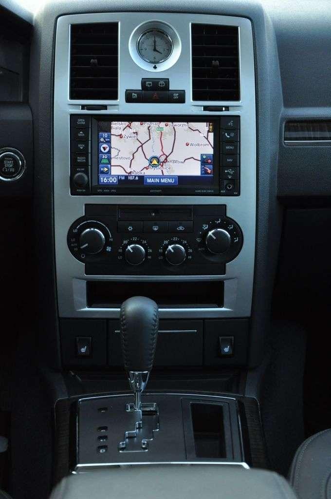 Wnętrze mogłoby być ilustracją hasła „solidność” w encyklopedii. Podobnie ze słowem „luksus”. To oczywiście nie jest poziom niemieckich konkurentów, ale nie można przecież narzekać kiedy wnętrze jest wypełnione chromami, skórą i drewnem. Zegary są podświetlone jasnozieloną poświatą, która nie męczy oczu. Centralną część konsoli zdobi analogowy zegarek. Dobre wrażenie robi też opcjonalny system audio Boston Acoustics z 7 głośnikami i wzmacniaczem o mocy 380 watów, zmieniarką na 6 płyt, twardym dyskiem i wejściem USB (podoba mi się podejście Chryslera: klasyka klasyką, ale nowoczesne media muszą być). Chryslerowi brakuje niestety dbałości o właściwy dobór niektórych materiałów wykończeniowych - przynajmniej dla aut produkowanych dla Starego Kontynentu. Plastiki zdradzają amerykańskie pochodzenie 300C, podobnie jak toporne miejscami wzornictwo, czego najlepszym przykładem jest panel sterowania nawiewem – wiem, że klasyka i styl retro miały tu duży wpływ, ale te plastikowe pokrętła wyglądają … tanio. Analogowe sterowanie klimatyzacją sprawia ponadto, że nie można liczyć na tryb „mono”. No cóż, przynajmniej wszystko jest proste i czytelne. Przyzwyczajenia wymaga jednak umieszczenie sterowania tempomatem – przełącznik został umieszczony zbyt blisko sterowania kierunkowskazami i w pierwszym dniu notorycznie przestawiałem tempomat zamiast włączać kierunkowskazy. Drążek kierunkowskazów jest przeładowany funkcjami, podczas gdy pod prawą ręką nie ma … nic. Prawa ręka więc pozostaje wolna i można ją śmiało wykorzystać do machania na gapiów, oglądających się za autem.