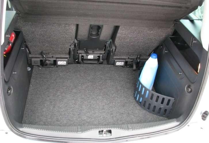 Przy jednej ściance umieszczono także niewielki, rozkładany kojec. To giętki pas sztucznego tworzywa z zaczepami pozwalającymi zamocować jego brzegi do odpowiednich otworów w ścianach. Tworzy wówczas półkolistą przestrzeń, w której można umieścić drobniejsze przedmioty, takie jak np. butelka płynu do spryskiwaczy, dzięki czemu nie przesuwają się po całym bagażniku na zakrętach.