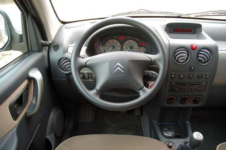 Wnętrze małego samochodu wielofunkcyjnego musi zapewniać kierowcy wygodę i komfort nie mniejszy niż w typowym pojeździe osobowym, bo wielu użytkowników takich aut wykorzystując je także biznesowo, spędza w nich kilka godzin dziennie. Kabinę uniwersalnej wersji Berlingo wykończono całkiem komfortowo, a co najważniejsze, zapewnia ona sporą wygodę. Jak na tego typu pojazd w Berlingo siedzi się dość wygodnie, choć po dłuższej jeździe można stwierdzić, że fotel mógłby być nieco bardziej komfortowy. Chociaż siedzi się dość wysoko, to pozycja za kierownicą wciąż bliższa jest typowemu autu osobowemu niż dużemu samochodowi dostawczemu. Kokpit i wykończenie pojazdu podporządkowano przede wszystkim użyteczności w myśl zasady – prosto i solidnie. Sporo tu elementów plastikowych, ale dobrej jakości. Ułatwiają one utrzymanie czystości i są dość odporne na trudy codziennej pracy pojazdu użytkowego. Wnętrze ożywiono dwukolorową tapicerką i wykończeniem deski rozdzielczej. Pragmatyzm wyposażenia widać po sposobie regulacji lusterek zewnętrznych – o ile prawe regulowane jest elektrycznie (choć sterowanie umieszczono dość nietypowo, nie na drzwiach, a niemal tuż obok kolumny kierownicy), to lewe lusterko sterowane jest tradycyjną dźwignią manualną – po co inaczej, skoro i tak do dźwigienki można sięgnąć równie łatwo, co do elektrycznego sterowania. Niezbyt typowo umieszczono też sterowanie elektrycznymi szybami, których przyciski znalazły się na konsoli środkowej. Wnętrze obfituje w sporą liczbę schowków i półek – włącznie z typową dla aut dostawczych półeczką nad szybą przednią. Funkcjonalność kabiny zwiększa dodatkowo możliwość złożenia oparcia fotela (w opcji). Jednym ruchem zmienia się ono w stolik do pracy, wyposażony w zacisk do dokumentów. Dostępne są też wysuwane stoliki w oparciach foteli przednich oraz pomysłowe półeczki z siatką nad drzwiami bocznymi.