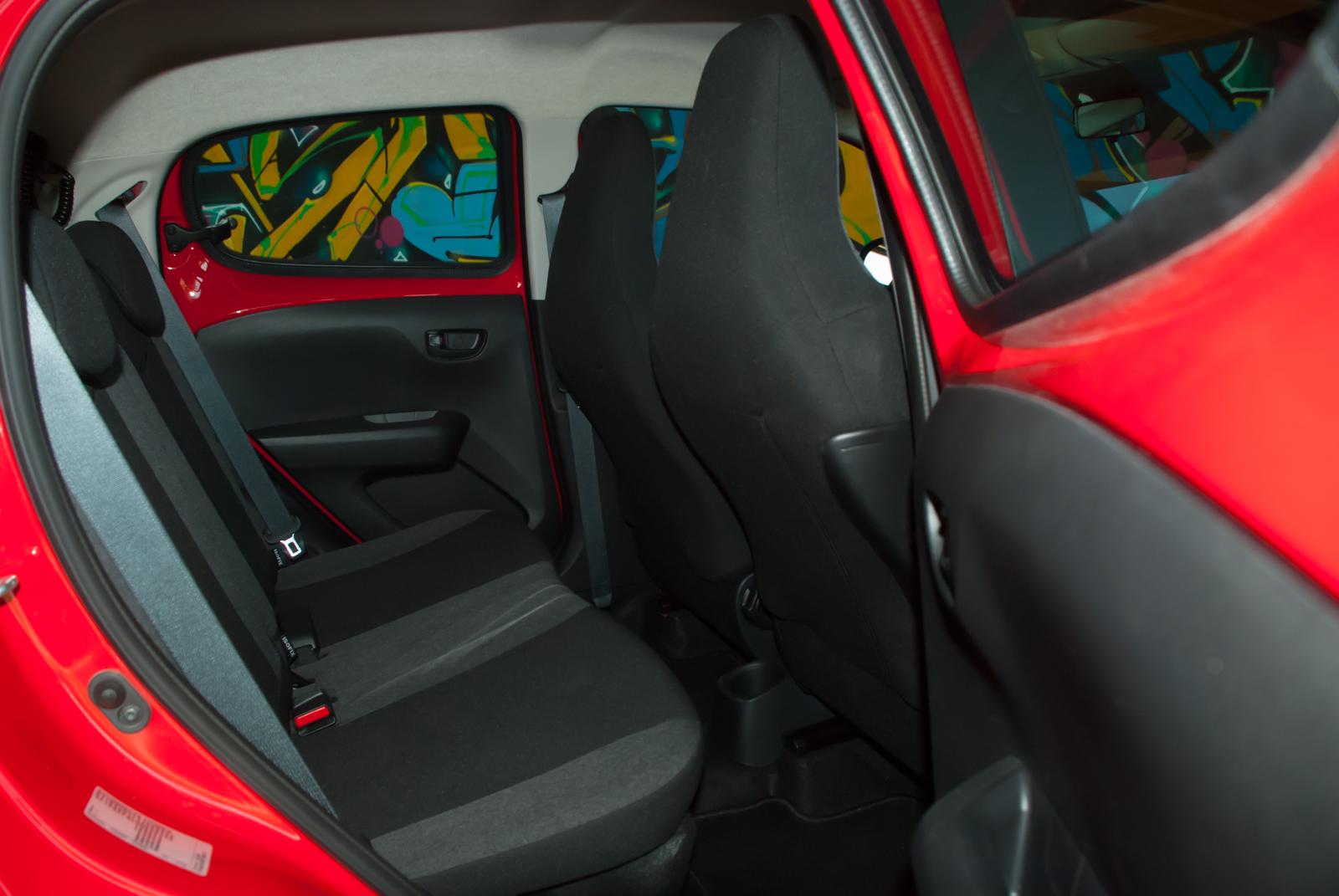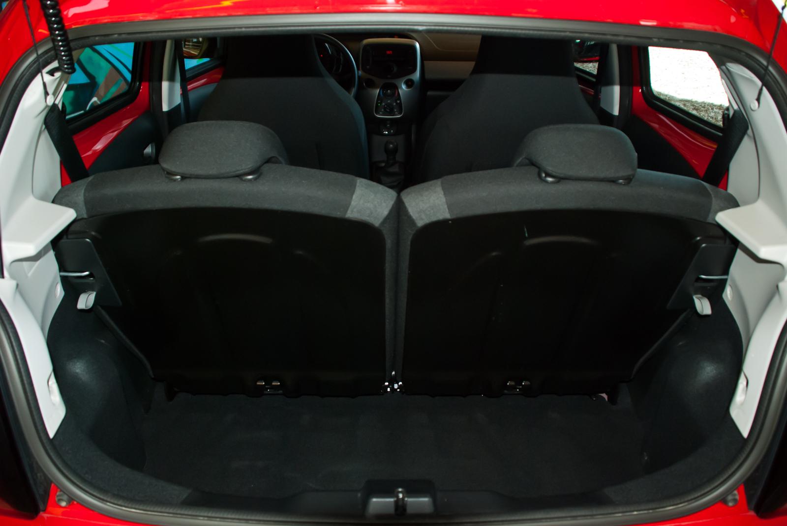 Po rozmiarach zewnętrznych trudno spodziewać się w środku nadmiaru przestrzeni. Auto mierzy niecałe 3,5 metra długości (dokładnie 3466 mm), przy „wzroście” 1,46 m, a rozstaw osi to skromne 2340 mm. Jeśli za kierownicą usiądzie wysoka osoba, to o tylnej kanapie możemy w zasadzie zapomnieć. Oparcie fotela dosłownie dotknie siedziska kanapy. Również 196-litrowy bagażnik pomieści przysłowiową damską torebkę i opcjonalnie kilka siatek z zakupami. Jego wadą jest jednak nie tyle pojemność, co głębokość. Przestrzeń bagażowa jest na tyle wąska, że kabinowa walizka musiała stać w pionie, ponieważ gabaryty bagażnika nie pozwalały na położenie jej na płasko. Łatwo się domyślić, że każde hamowanie skutkowało obijaniem się jej o ścianki bagażnika.
