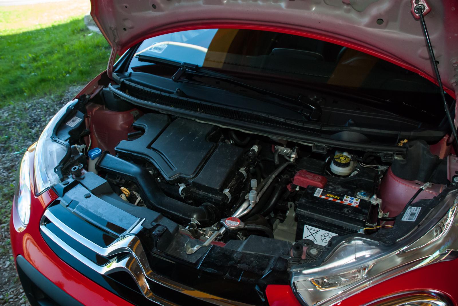 Pod maską znalazł się litrowy trzycylindrowy silnik o powalającej mocy 68 koni mechanicznych. Maksymalny moment obrotowy wynosi jedynie 95 Nm, więc łatwo się domyślić, że jakakolwiek bardziej dynamiczna jazda wymaga niemałych starań. Wskaźnik obrotów silnika nie powinien na długo rozstawać się z górnymi partiami obrotomierza, a kierowcy przydadzą się stopery do uszu. Niestety dźwięk generowany przez trzy cylindry na wysokich obrotach, może przyprawiać o ciarki. Przypomina nieco odgłos elektrycznej podkaszarki, która wpadła w histerię.