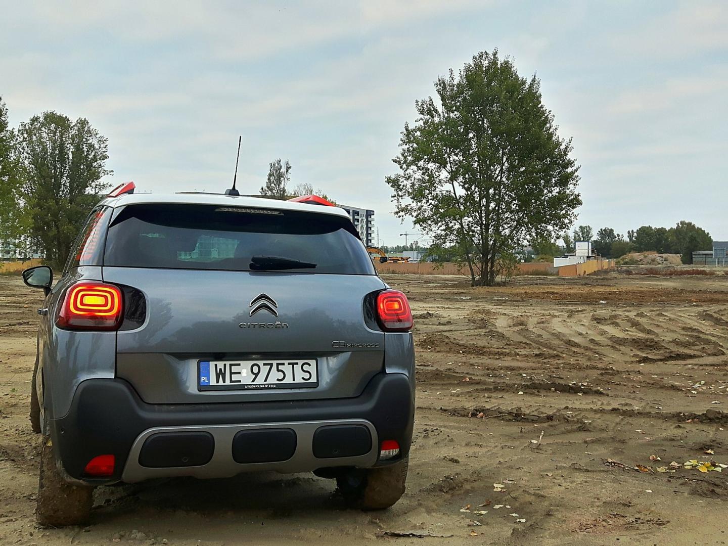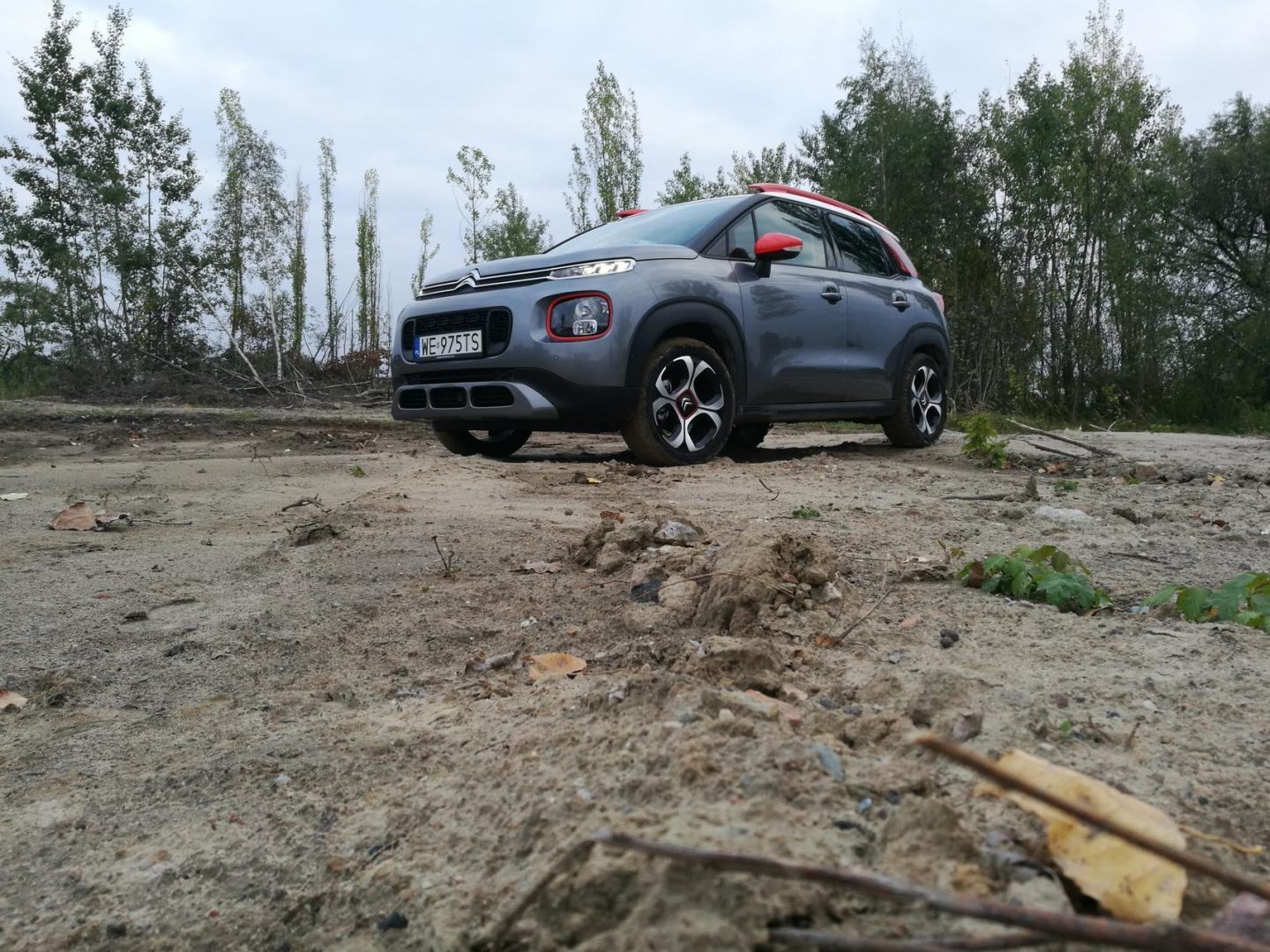 C3 Aircross nie jest dużym autem (długość 4,15 m), ale krótkie zwisy i dobrze poprowadzona linia powoduje, że C3 w wydaniu „terenowym” sprawia wrażenie przysadzistego i gotowego na wiele wyzwań. Jednym z nich jest miasto, gdzie dzięki 175 mm prześwitu i wspomnianym zwisom samochód nie boi się wysokich krawężników oraz stromym podjazdów i zjazdów. Dzięki tym samym cechom z łatwością możemy zboczyć z asfaltu i pobawić się w mały off-road. Zabawę w trudniejszym terenie ma wspomóc system kontroli trakcji Grip Control z pięcioma trybami do wyboru: tryb Standard, Sand, All-Road, Snow i ESP Off. System ten w żaden sposób nie ingeruje w twardość oraz wysokość zawieszenia. Auto nie jest stworzone do ciężkiego terenu, dlatego dostajemy tylko namiastkę off-roadu.