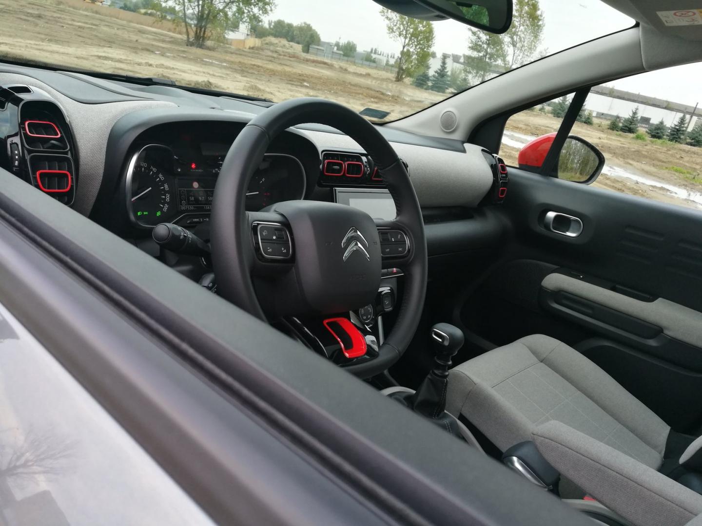 Fotel obniżony do minimum, pasy zapięte. Ruszamy w drogę. Wciskamy przycisk, silnik o pojemności 1200 cm3 i mocy 130 KM budzi się do życia. Lekka wibracja przy odpalaniu i charakterystyczny dźwięk informują, że z przodu na pewno nie ma rzędowej czwórki. W C3 Aircross wyraźnie słychać trzy cylindry, dużo bardziej niż chociażby w niemieckich modelach podobnego segmentu. Szczególnie powyżej 2500 obr./min. Wtedy mała jednostka zaczyna robić sporo hałasu, nie do końca przyjemnego. Wibracje występują bardzo często, podczas ruszania zdarza się, że silnik się dławi. Aby komfortowo ruszyć, należy wskazówkę obrotomierza podnieść do minimum 1700 obr./min.