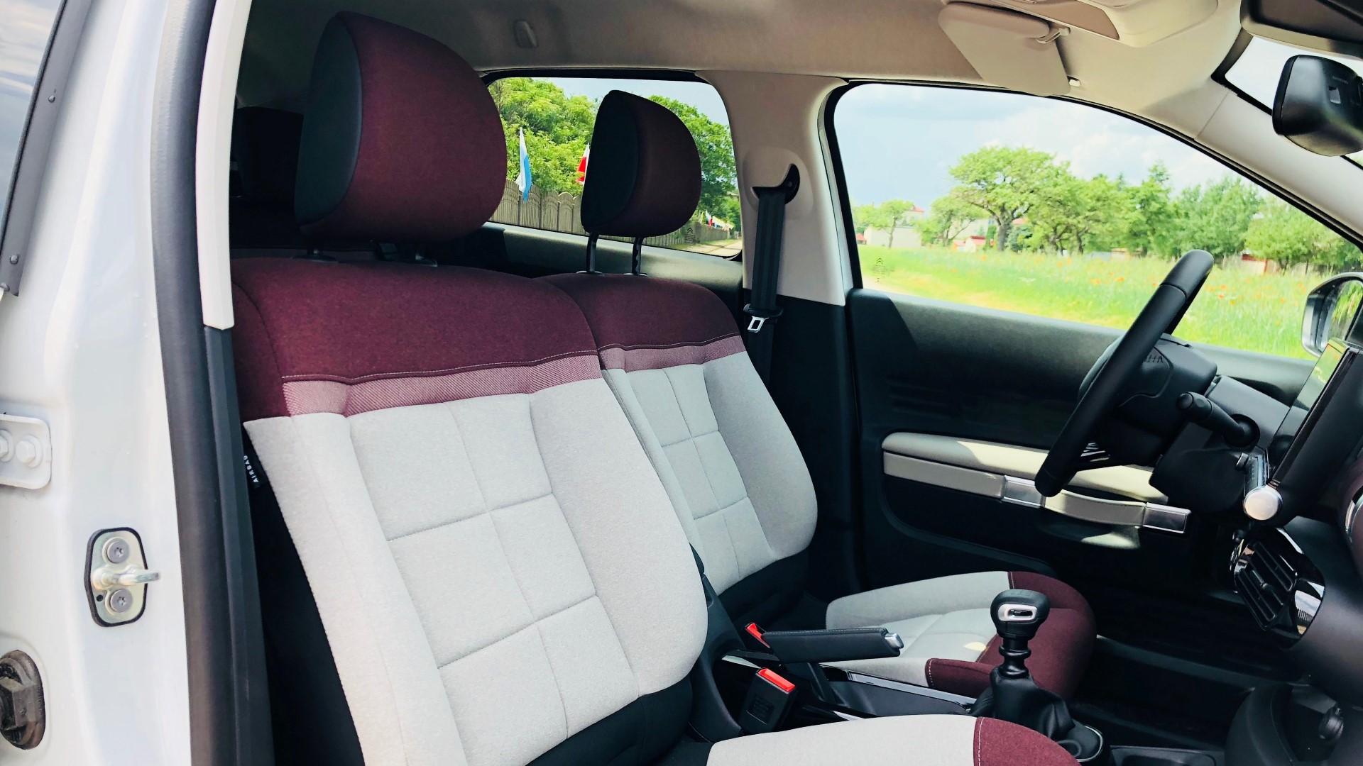 Środek poddano o wiele mniejszym zmianom. Cechą charakterystyczną „kaktusa” do tej pory była duża kanapa zamiast przednich foteli przy wyborze automatycznej skrzyni biegów. Dziś już niestety nie dostaniemy tego rozwiązania. Fotele jednak bardzo się zmieniły. To właśnie przez nie, Cactus zapadł mi w pamięć. Citroen zwiększył ilość i gęstość pianki użytej do ich wypełnienia. Gdy po raz pierwszy na nich usiadłem, poczułem się jak w domu na kanapie. Są bardzo miękkie oraz – co najważniejsze – wygodne. Po zmianie auta brakowało mi właśnie tych foteli…