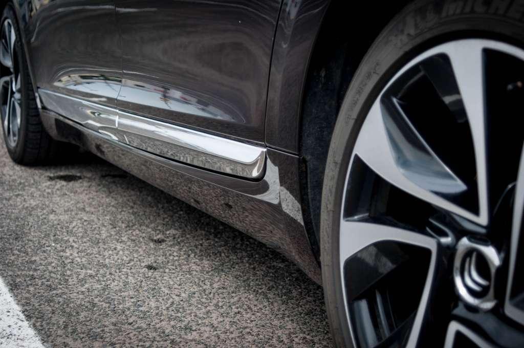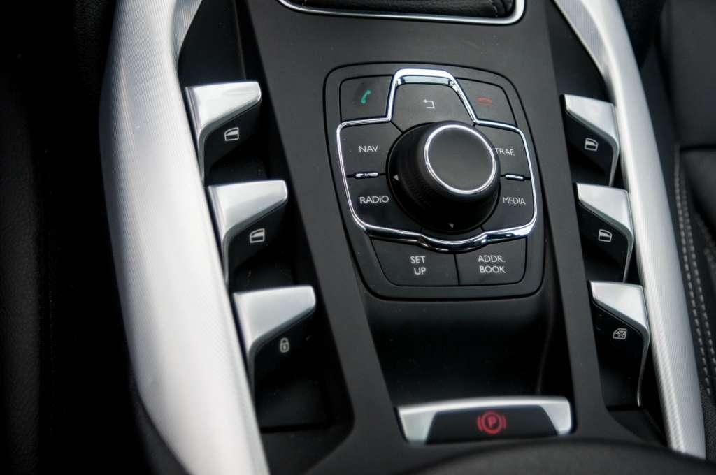 Wróćmy jednak na ziemię. Tunel środkowy jest dość szeroki, a na nim znowuż sporo ładnych przycisków –kontrola szyb z przodu i z tyłu, blokada drzwi i okien, a także sterowanie systemem multimedialnym i nawigacją. Mógłbym tak pisać właściwie o każdym elemencie w środku, bo wszystko zostało ciekawie zaprojektowane i nawet nie śmiałbym twierdzić, że jest to nudne i wtórne. Skupmy się jednak na praktyczności tych rozwiązań, bo wszyscy wiemy, jak to bywa z nią u Francuzów. Sterowanie szybami – trzeba się nauczyć. Za każdym razem kiedy chciałem odsunąć swoją szybę, odsuwałem tylną i za każdym razem byłem tak samo zdziwiony – zawsze wydawało mi się, że trafiłem w odpowiedni przycisk. Dużo czasu zabrało mi też dojście do tego, jak regulować głośność radia, nie używając w tym celu przycisku na kierownicy. Odpowiedź była w zasięgu ręki. Chromowana obwódka pod ekranem nie jest tylko ozdobnikiem, bo potrafi się też obracać. A wystarczyło to jakoś oznaczyć…