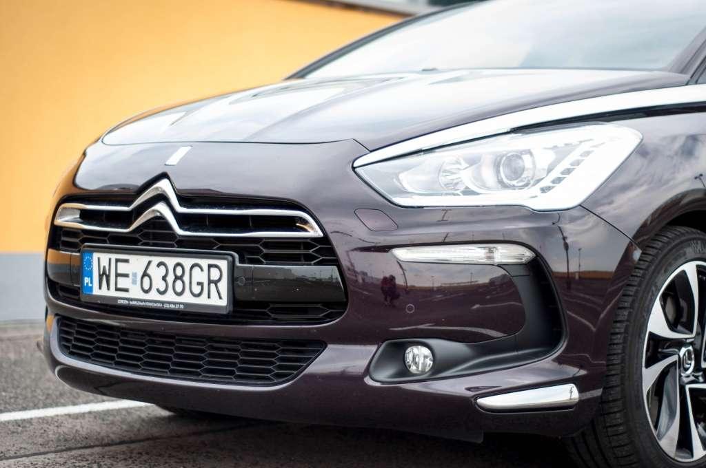 Pomysł na połączenie hatchbacka z limuzyną w historii motoryzacji nie jest nowy. Jednym z ostatnich tego typu tworów był Opel Signum - samochód bazujący na Oplu Vectrze C, ale z tyłem zabudowanym jak w hatchbacku. Do naszej francuskiej potrawy należało jednak dodać jeszcze szczyptę crossovera i w ten sposób otrzymujemy nietypowe danie zwane Citroenem DS5. Jego kształt z pewnością może się podobać przechodniom. Samochód jest masywny, efektowny, ale i bardzo elegancki - szczególnie w śliwkowym kolorze, takim, jak w testowym modelu. Stylu dodają też liczne chromowane wstawki, ale ta idąca od maski do słupka A jest już chyba trochę za długa i za duża. Na szczęście potrafi się dobrze maskować. Wiele osób nie było w stanie z daleka określić, czy to jakaś wstawka, czy po prostu odbicia w lakierze. Z przodu samochód jest, jak na mój gust, zbyt obły, ale przez to też opływowy. Wielkie lampy zachodzą na boki, a chromowana linia przypomina zmarszczone brwi nad świecącymi oczami. Może i wygląda to ciekawie, ale do mnie nie przemawia. Z kolei tył? Wręcz przeciwnie – wygląda świetnie. Dwie wielkie rury wbudowane w zderzak sugerują sportowe zacięcie, podobnie zresztą jak spoiler nad tylną szybą. Ciekawie prezentuje się też fantazyjny kształt tylnych lamp, które są nadzwyczaj trójwymiarowe – w jednym miejscu wypukłe, w innym całkiem wklęsłe. DS5 jest dość szeroki, bo jego 1871 mm można porównać do limuzyn wyższej klasy, przy czym BMW Serii 5 jest węższe o 11 mm, a przykładowo Audi A6 jest szersze o zaledwie 3 mm. Proporcje ustalone przez francuskich projektantów mocno osadzają samochód na drodze, a to nie pozostaje bez wpływu na prowadzenie i na ilość miejsca w środku. Przynajmniej powinno.