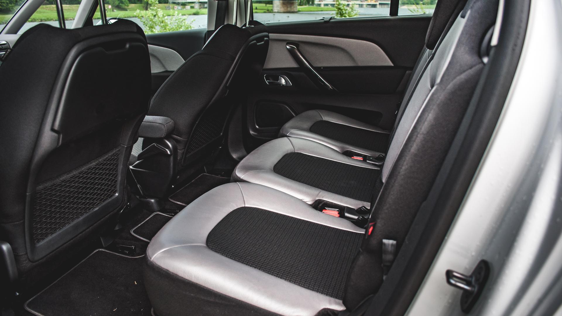 Najlepszym miejscem do podróżowania jest tu oczywiście prawy przedni fotel, pod warunkiem, że pochodzi on z pakietu Lounge. Wysunięty podnóżek i masaż pleców mogą znacząco umilić jazdę Citroenem Grand C4 Picasso. Zagłówki z przodu mają charakterystyczny kształt, który utrzymuje głowę w miejscu. Poza tym są miękkie. Przyjemne, ale trzeba się przyzwyczaić.