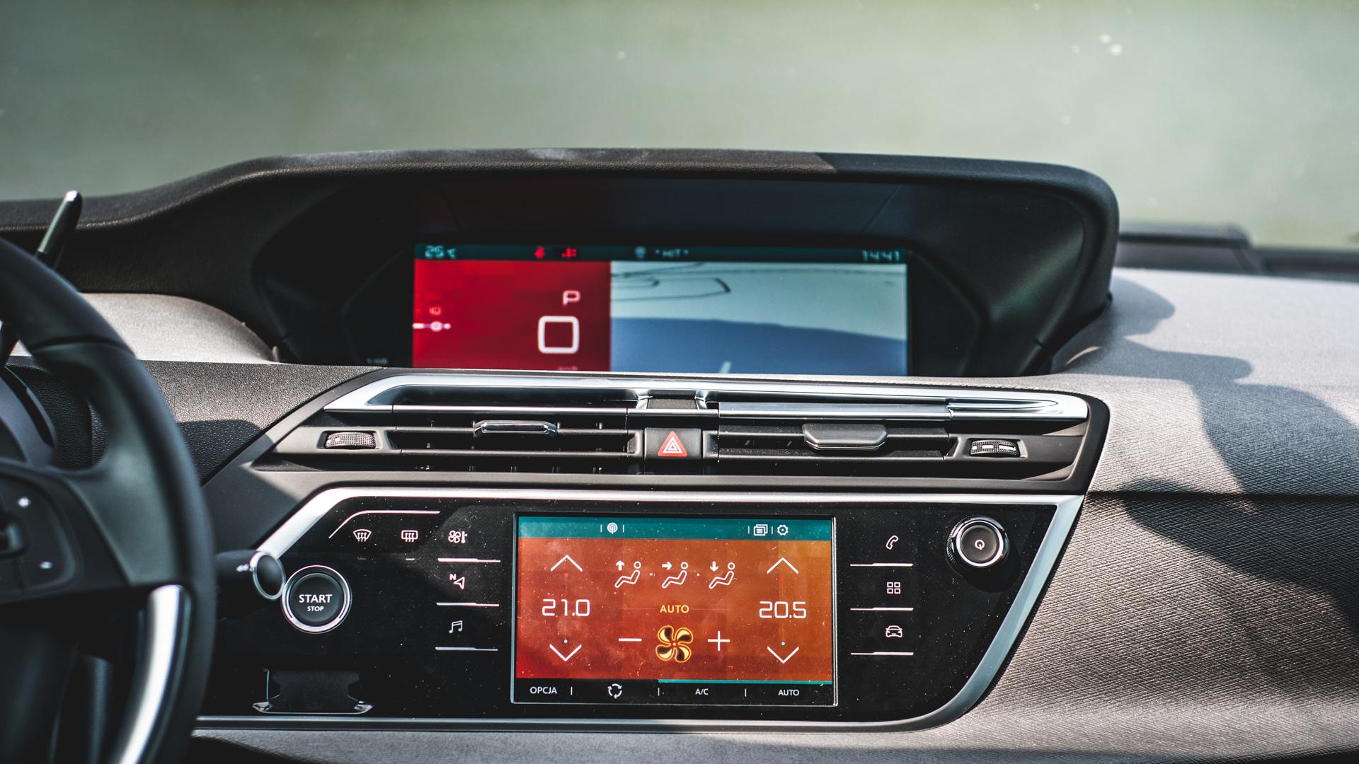 Już chyba wszyscy producenci przy okazji odświeżania oferty aktualizują też systemy multimedialne. W Grand C4 Picasso dolny 7-calowy ekran działa teraz sprawniej. Nowy system pozwala też podłączyć Picasso do Internetu i tym samym zyskać na przykład dostęp do rzeczywistych informacji o ruchu drogowym w okolicy. Także i górny 12-calowy ekran zyskał nowe opcje wyświetlania, ale chyba też jedną opcję stracił. Tę, dzięki której mogliśmy wyświetlać na nim zdjęcie zboża.