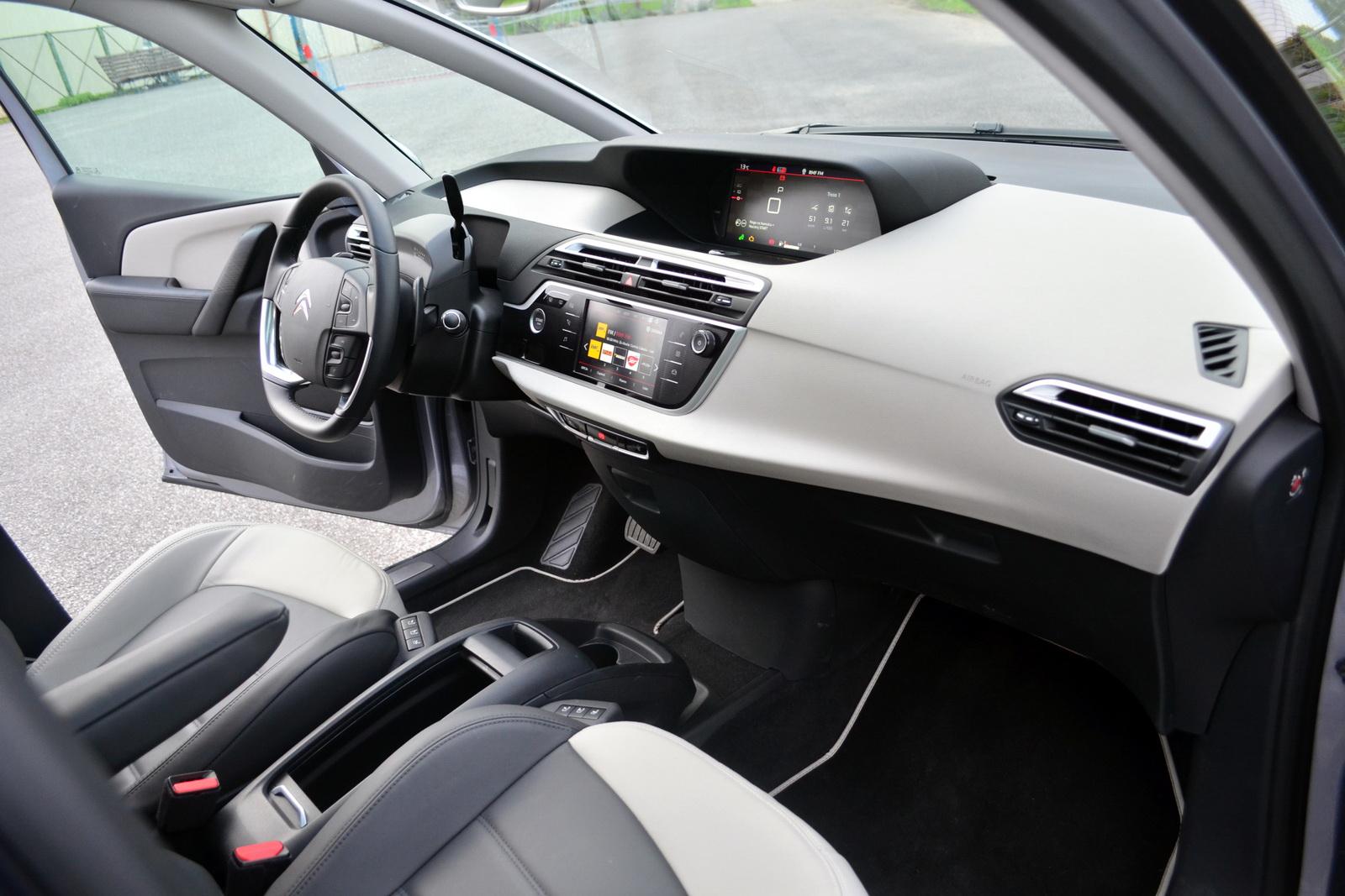 Od zaprezentowanej pod koniec lat ’90 pierwszej generacji Citroena Xsara Picasso, francuski koncern pokazuje, że van może być nie tylko praktyczny, ale i ciekawy z wyglądu. Cechą charakterystyczną tych samochodów, aż do dziś, jest ogromna powierzchnia okien. Do tego, nasz testowy Citroen Grand C4 SpaceTourer wyposażony jest w powiększoną szybę czołową, sięgającą niemal nad głowy kierowcy i pasażera z przodu. Ponadto nad drugim rzędem siedzeń i częściowo nad bagażnikiem rozpościera się ogromna tafla szkła. To wszystko sprawia, że poruszając się tym Citroenem można się poczuć jak w szklarni. Choć dzięki bardzo wydajnej klimatyzacji należałoby napisać – jak w kabriolecie, tyle, że nic nie rozwiewa nam włosów. A troszkę by mogło, gdyby choć część szklanego dachu dało się uchylić.