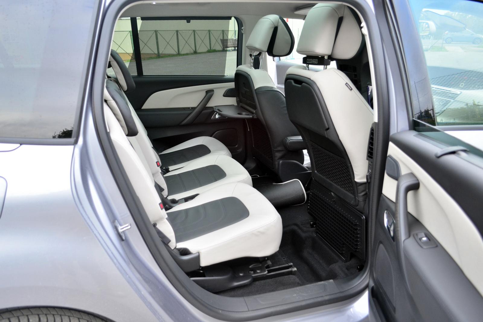 Citroen oferuje niekończącą się ilość schowków i skrytek. W podłodze bagażnika, koło złożonych siedzeń trzeciego rzędu zmieścimy takie drobiazgi jak gaśnica czy apteczka. Nasze dzieci z tyłu w oparciach siedzeń umieszczą swoje książeczki, a pod nogami, w schowkach w podłodze – zabawki. Poza kieszeniami we wszystkich drzwiach, dalsze skrytki znajdziemy w desce rozdzielczej. Ogromny klimatyzowany schowek przed pasażerem, nieco mniejszy pod ekranem nawigacji i skrytkę na dokumenty przed kolanami kierowcy. To nadal nie wszystko. Dodatkowy przepastny schowek mieści się jeszcze w tunelu środkowym.