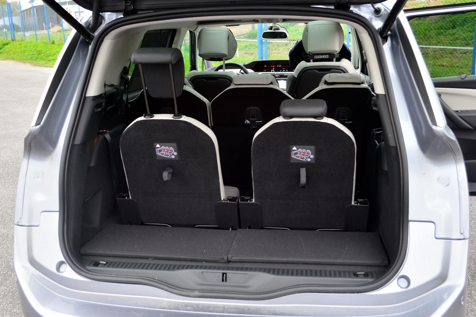 W europejskich vanach, opartych na samochodach kompaktowych, mieszczących siedmiu pasażerów, zazwyczaj wygodnie usiąść może pięcioro dorosłych i dwoje dzieci w trzecim rzędzie. Tak zawsze było w Renault Scenic czy Oplu Zafira. Pod tym względem Citroenowi Grand C4 SpaceTourer bliżej do aut z większego segmentu – takich jak Ford S-Max / Galaxy czy Renault Espace. Na dodatkowych siedzeniach naprawdę da się usiąść, a dzięki wygodnemu sposobowi składania skrajnych foteli w drugim rzędzie, dostanie się do nich nie sprawia problemów. To zaskakujące, biorąc pod uwagę bliskie pokrewieństwo z Peugeotem 5008. Lew sprawia wrażenie zdecydowanie bardziej ciasnego. Gdy zabierzemy komplet pasażerów, to oczywiście zostanie nam do dyspozycji wyjątkowo mało bagażnika. Cóż – coś za coś.