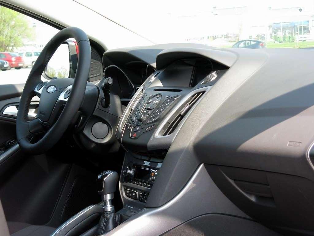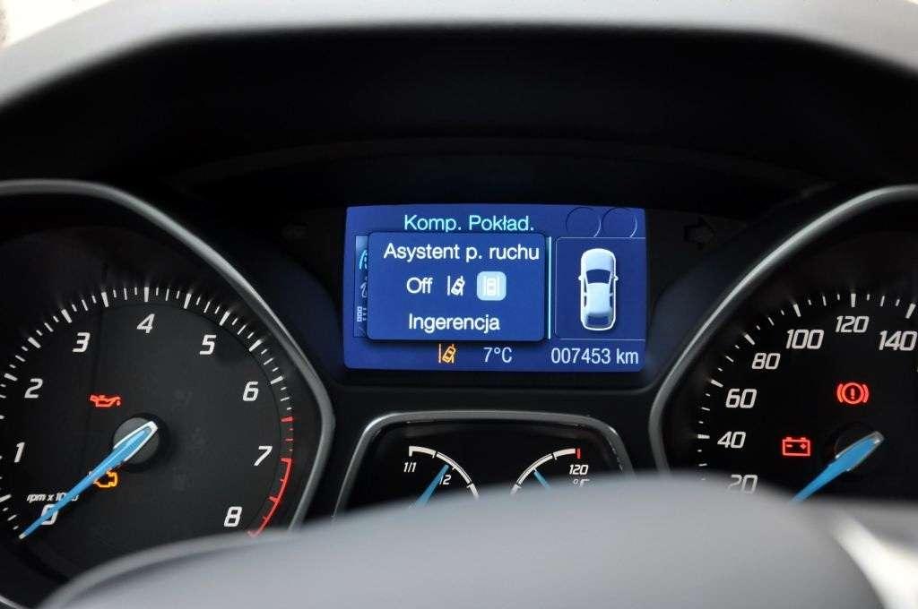 Jednych rzeczy nie widać – choćby stali o zwiększonej wytrzymałości, która w 55% buduje to auto. Inne można sobie za to dokupić – Focus niby ma być popularnym autem, ale część elementów jego wyposażenia do niedawna można było spotkać wyłącznie w autach, które są za drogie nawet dla Madonny. Tymczasem do 30km/h może czuwać system zatrzymujący wóz, gdy zostanie wykryte ryzyko kolizji. To jednak jeszcze nic – czujniki martwego pola w lusterkach można już spotkać u tanich marek, ale na system rozpoznający znaki drogowe łatwiej natknąć się we flagowych modelach Mercedesa, BMW czy Audi. Co prawda nie działa idealnie, a o ograniczeniu prędkości w mieście nie ostrzeże, bo oznaczenie terenu zabudowanego jest dla niego tak abstrakcyjne, jak dzieła Lucio Montany – ale przynajmniej można go mieć. W opcji jest nawet system kontroli pasa ruchu. Dzięki niemu Focus sam delikatnie koryguje swój tor jazdy, choć trzeba przyznać, że sam system jest dość wymagający i czasem gubi się nawet w przypadku wyraźnych oznaczeń na jezdni. Bezbłędnie działa za to asystent parkowania. Wystarczy go uruchomić, puścić kierownicę i ruszyć na podbój „zatoczek”, bo wóz automatycznie będzie w nie parkował – trzeba tylko wciskać „gaz” i „hamulec”. Co ciekawe – w kabinie mogą być też zamontowane czujniki, które wykrywają zmęczenie na twarzy kierowcy. Jeśli auto uzna, że coś jest nie tak, to włącza kontrolkę ostrzegawczą. Gdy kierowca dalej jedzie przed siebie na jawie – wtedy do akcji wkracza już sygnał dźwiękowy. Podgrzewanie przedniej szyby, monitorowanie ciśnienia w ogumieniu, czy automatycznie włączające się światła drogowe – to miłe i rzadkie dodatki, ale wobec zastosowanej technologii i tak wydają się być wynalazkami z Paleozoiku. Jednak co z tego można dostać w podstawowej wersji Forda?