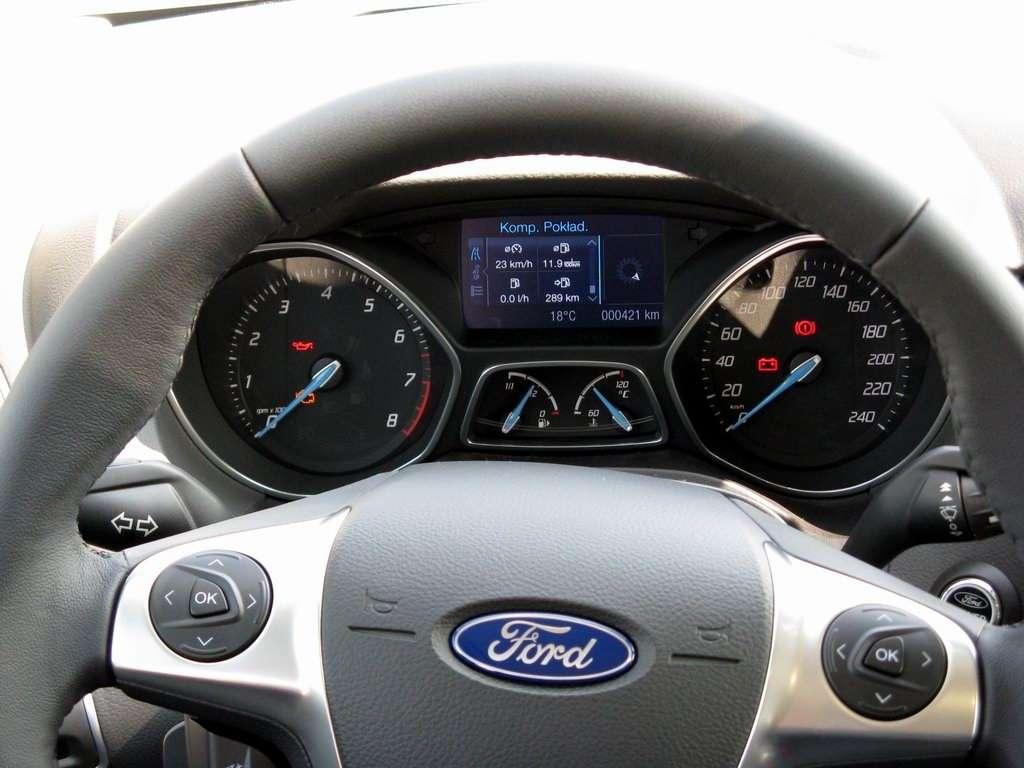 Jak najbardziej – zawieszenie jest niezależne i wielowahaczowe. Do tego przednia oś gwarantuje stały rozdział momentu obrotowego pomiędzy oba koła, dzięki czemu wóz prowadzi się jak przyklejony do drogi. Najlepsze jest to, że powinien być podsterowny, ale trzeba być naprawdę zdolnym, żeby wyprowadzić go z równowagi. A to oznacza, że pewnie jest niemiłosiernie twardy. Nic bardziej mylnego – na prostej drodze wóz jest zaskakująco delikatny. Całkiem nieźle wybiera nawet poprzeczne nierówności, które zwykle w innych autach wiążą ludziom kręgosłupy w supły. Często jest tak, że to, co nadrobi zawieszenie, zepsuje układ kierowniczy, jednak tu też ktoś nad nim posiedział. Wspomaganie co prawda uzależnia swoją siłę od prędkości, ale i tak pracuje dość mocno. Mimo to sam układ jest tak bezpośredni i szybki, że w ogóle nie sprawia wrażenia przeszczepionego z zupełnie innego auta. Pozostaje jeszcze kwestia silników. Spokojni i niezbyt rozrzutni powinni zainteresować się jednostkami 1.6l. Wolnossące „benzynówki” mają 105-125KM, a diesle – 95-115KM. Tylko, że nie wszyscy są spokojni. Można wziąć wysokoprężny 2.0l 140-163KM, choć jest też dostępny motor o takiej samej pojemności i 115KM. Jest sprzężony tylko z 6-biegowym automat PowerShift. To chluba Forda – jest szybki, ma możliwość ręcznej zmiany biegów, ładnie się nazywa i konkuruje z DSG Volkswagena. Jest za to coś jeszcze ciekawego – benzynowy silnik EcoBoost. Ma tylko 1.6l, ale dzięki turbosprężarce i bezpośredniemu wtryskowi wyciska 150 lub 182KM. Ten drugi wariant brzmi naprawdę groźnie, ale tylko do momentu, gdy nie wciśnie się pedału „gazu”. Tej mocy po prostu w nim nie czuć i trzeba go zarzynać naprawdę wysokimi obrotami, żeby porządniej wciskał w fotel. Wersja 150-konna jest za to całkiem rozsądna. Nie straszy turbodziurą, moc rozwija równomiernie i pomimo, że ciężko się w niej spocić ze strachu o własne życie, to jest jednym z lepszych wyborów w tym aucie. Jeździ po prostu dobrze.