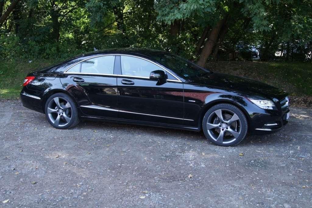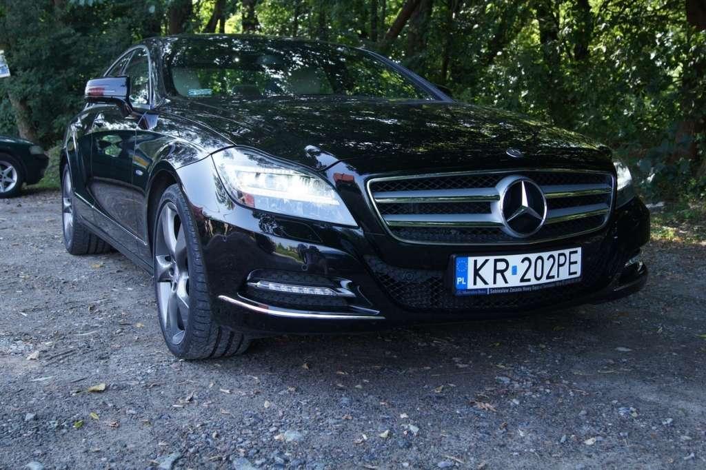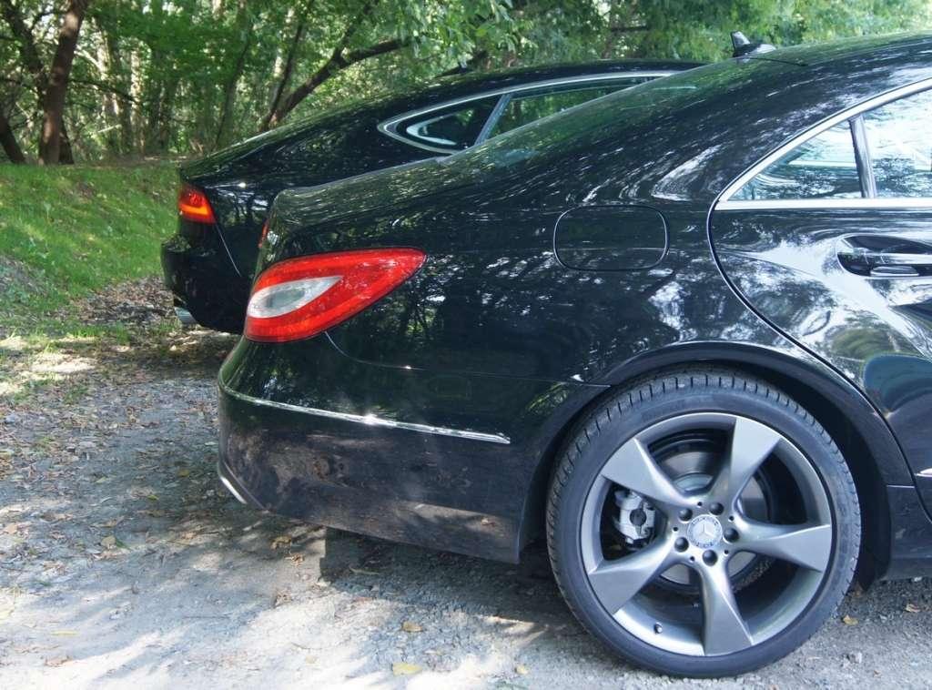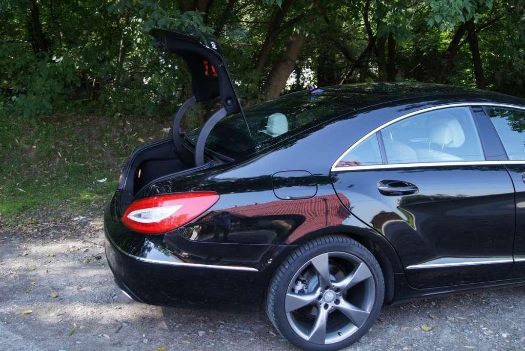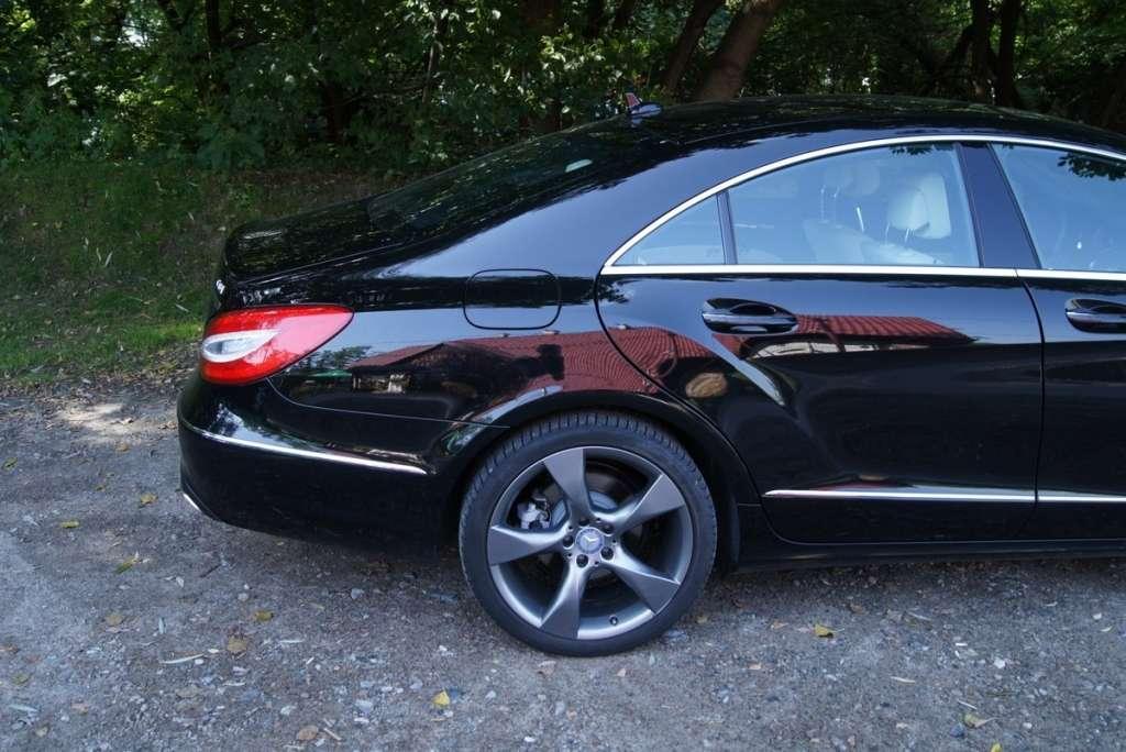 Gdy postawiłem moje Audi A7 obok CLSa, urok Audi znacznie jednak osłabł. Przy długości 494 cm, szerokości 188 cm, wysokości 141,5 cm i rozstawie osi 287,5 (a więc wymiarach identycznych jak Audi A7), w Mercedesie stworzono całkowicie inną stylistykę nadwozia. Nadal jest to wprawdzie limuzyna coupe z zaokrąglonym dachem i ostro pochyloną tylną partią, ale po pierwsze dostęp do bagażnika wykonano poprzez otwieranie samej klapy jak w prawdziwym Coupe (co jest wprawdzie mniej funkcjonalne jeżeli chodzi o dostęp do powierzchni bagażowej, ale praktyczniejsze pod względem otarcia klapy), po drugie nie ma on chowanego spojlera, a po trzecie CLS ma bardziej sportową, zadziorną linię. Wydaje się to dziwne zważywszy, że to firma ze Stuttgartu była zawsze dość konserwatywna we wprowadzaniu innowacji stylistycznych, ale w przypadku CLS mamy bardziej wyrazisty przód (agresywny nos), a ponadto o ile Audi wykonano prostymi pociągnięciami ołówka, w przypadku Mercedesa widać, że zadbano także o wyprofilowania blach i załamanie światła (charakterystyczne barki i wyprofilowania tylnych nadkoli). Zastanawiał mnie brak wysuwanego spojlera, ale gdy spytałem o to podczas salonu w Genewie 2011 jednego z szefów AMG powiedział mi, że CLS opracowywano jako limuzynę i pod tym względem opracowywano aerodynamikę pojazdu, która ma być dostojna bez żadnych „ekskluzywnych dodatków”.