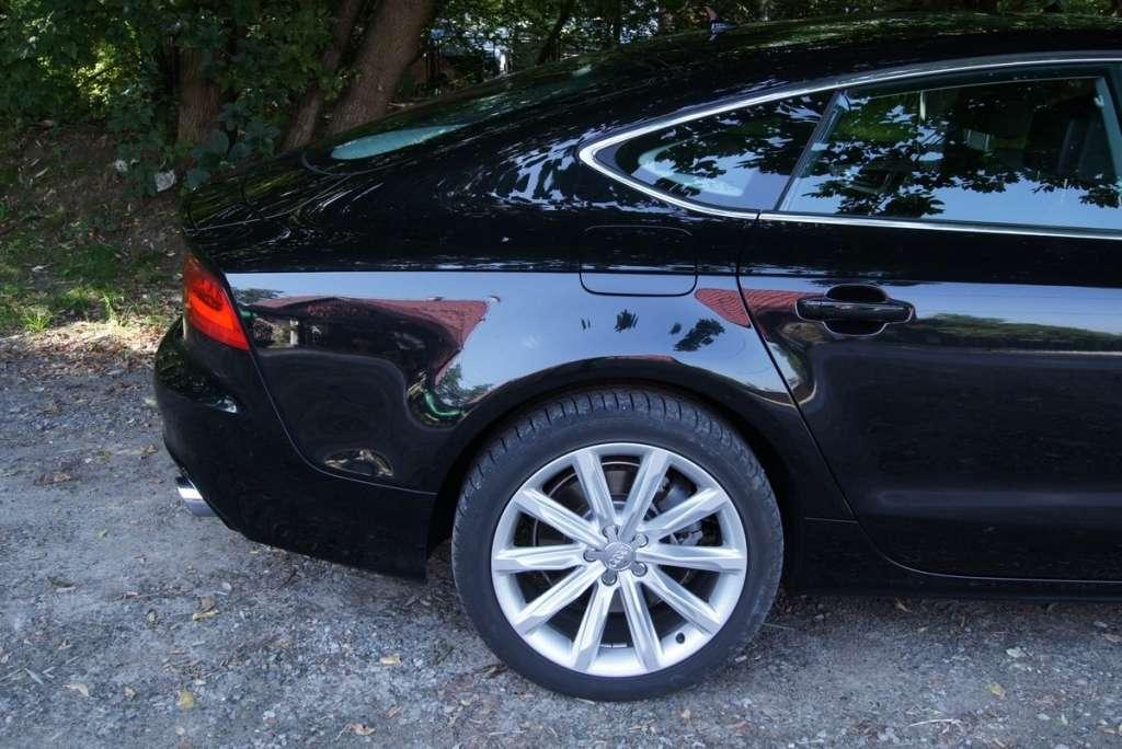 Audi A7 Sportback to czteroosobowe pięciodrzwiowe coupé ze sportowymi proporcjami: długą maską, dużym rozstawem osi i krótkimi zwisami poprzecznymi. Ma ono 497 cm długości i rozstaw osi 291 cm, a szerokość i wysokość wynoszą odpowiednio 191 cm i 142 cm. Dynamikę zdradza też zarys karoserii: z przodu A7 Sportback ma płaską osłonę chłodnicy Singleframe, łukowi dachu nadano formę płaskiej kopuły, słupek C rozciągnięty jest daleko w tył i przechodzi w „bark” nadwozia. Ponadto linia „tornado” (rozpoczynająca się przy reflektorach i przebiegająca przez błotniki, drzwi, tylną ścianę boczną i lekko opadająca ku tylnym światłom) to element stylistyczny A7 Sportback decydujący o proporcjach sylwetki. Z tyłu mamy kolejne nawiązania do samochodów sportowych. Pierwszym jest dynamiczna linia obejmująca stromo opadający tył nadwozia, a drugim wbudowany w pokrywie bagażnika spojler, który wysuwa się automatycznie przy prędkości 130 km/h a przy 80 km/h chowa. Oczywiście nie mogło zabraknąć innowacji technicznych. Audi przygotowało do A7 Sportback szeroką ofertę systemów wspomagających kierowcę. Najważniejszym i najbardziej kompleksowym systemem wspierającym kierowcę jest nowy adaptive cruise control (ACC) z funkcją Stop&Go wraz z Audi pre sense front. System ten reguluje prędkość i odległość A7 Sportback od jadącego z przodu pojazdu przez dodawanie gazu i hamowanie w zakresie od zera do 250 km/h, przy czym w pewnych granicach hamuje samoczynnie. Przy prędkości powyżej 60 km/h kamera wbudowana w stopkę lusterka wewnętrznego obserwuje oznaczenia poziome na jezdni. Jeżeli A7 Sportback zbliża się do linii bez włączenia kierunkowskazu, system płynnymi ingerencjami w układ kierowniczy pomaga kierowcy wrócić na swój pas ruchu. Obrazy z kamery wykorzystuje także kolejny system wspomagania kierowcy, który rozpoznaje znaki ograniczenia prędkości, dodatkowe tablice pod nimi i znaki końca ograniczenia. Słowem elektroniczne laboratorium na kółkach.