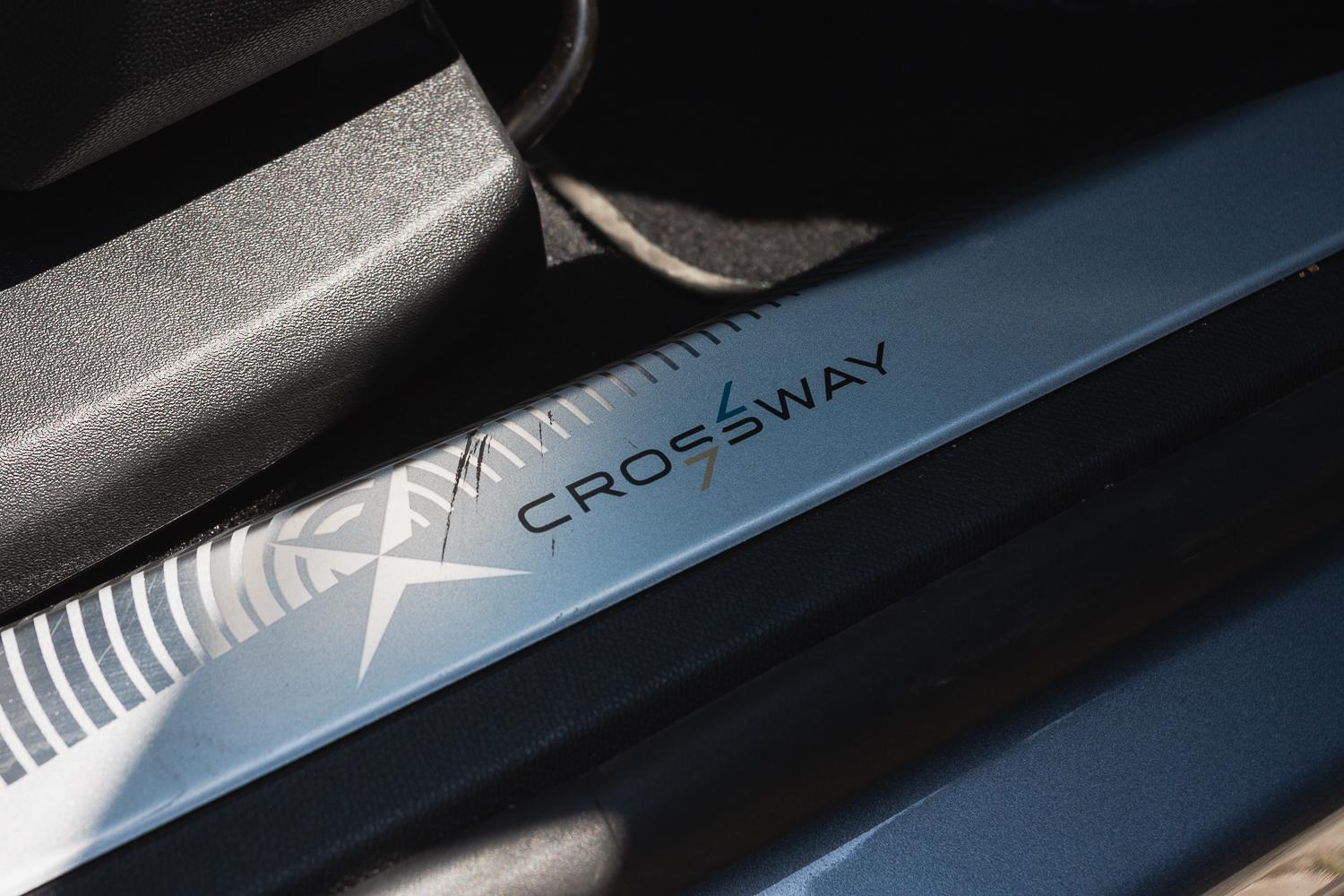 Z daleka ciężko dostrzec szczegóły wyróżniające Crosswaya od innych wersji wyposażeniowych. Jednak wprawne oko zauważy emblematy wersji na przednich nadkolach oraz „tatuaż” na słupku B z wypisanymi współrzędnymi miejsca na… Polach Elizejskich w Paryżu. Dość zaskakująca destynacja dla samochodu zachęcającego do zjazdu na skróty i odkrywanie nowego.