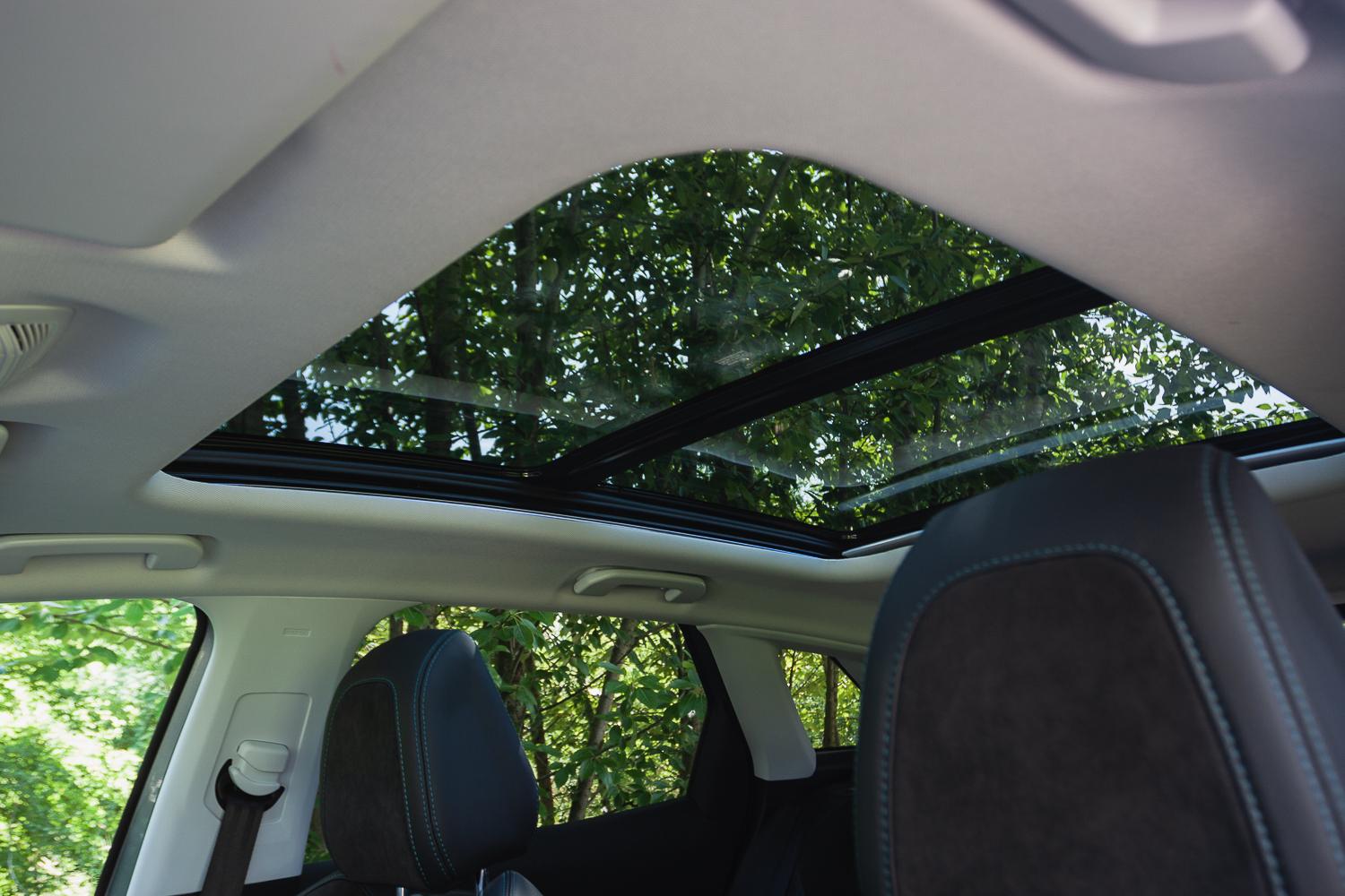 Wnętrze wersji Crossway zostało spersonalizowane o dywaniki podłogowe ze współrzędnymi geograficznymi, ale poza tym próżno szukać innych akcentów. Ale czy ktoś ich oczekiwał? Czarna podsufitka, szklany dach z ambientowym podświetleniem, półskórzana tapicerka łączona z Alcantarą – to wszystko wygląda elegancko i spójnie.