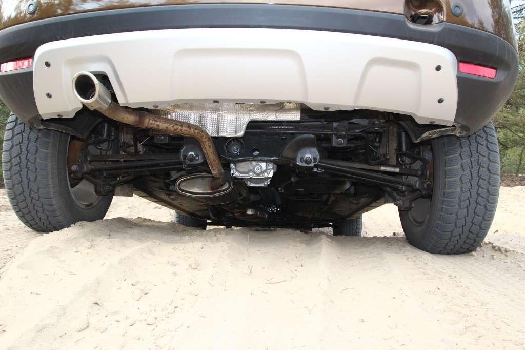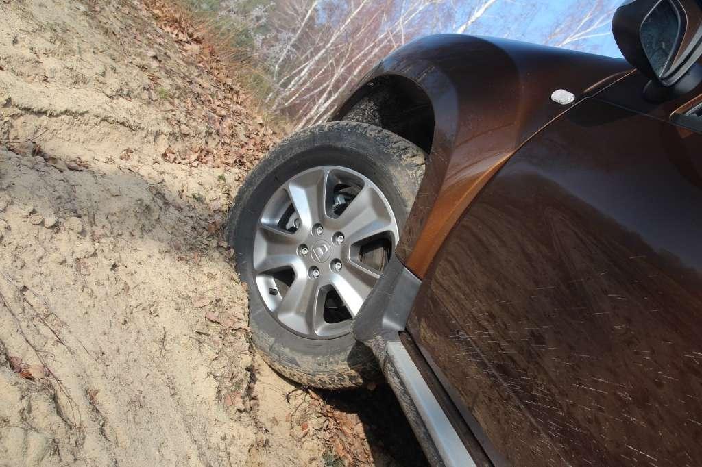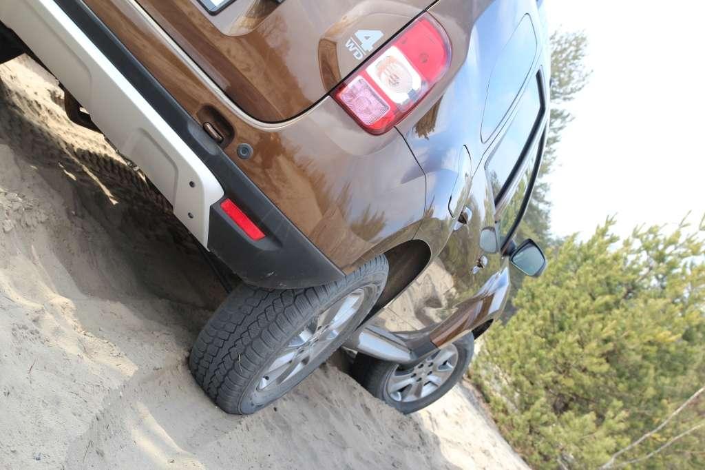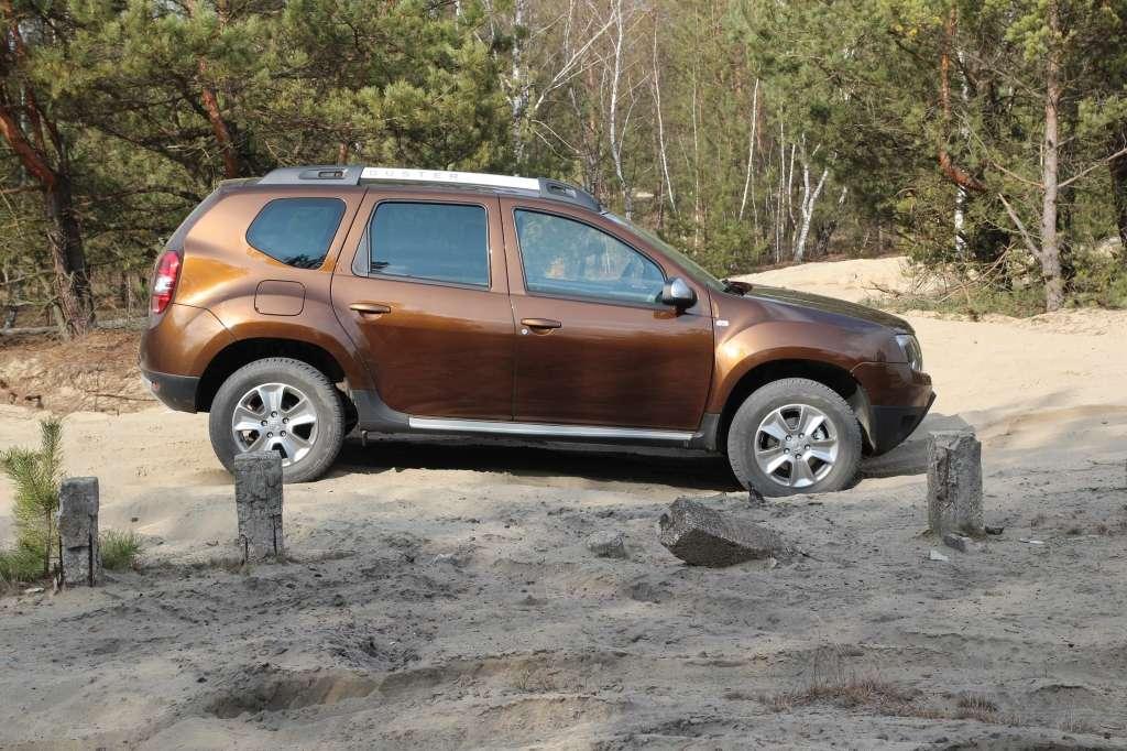 Rumuński SUV zaskakuje dzielnością w lekkim terenie. Sprzymierzeńcem kierowcy są nie tylko krótkie zwisy nadwozia, przyzwoite kąty natarcia i zejścia oraz spory, 21-centymetrowy prześwit. Na luźnych nawierzchniach atutem staje się relatywnie niska masa pojazdu (1,3 tony), która ogranicza grzęźnięcie kół w podłożu. Silnik oraz skrzynia biegów są chronione przez metalową osłonę – w segmencie kompaktowych SUV-ów to ewenement. Czujność należy zachować jedynie podczas forsowania strumieni czy bardziej pokaźnych kałuż. 35-centymetrowa głębokość brodzenia przypomina, że mechanika Dustera w linii prostej wywodzi się z podzespołów Logana, Sandero czy Clio.
