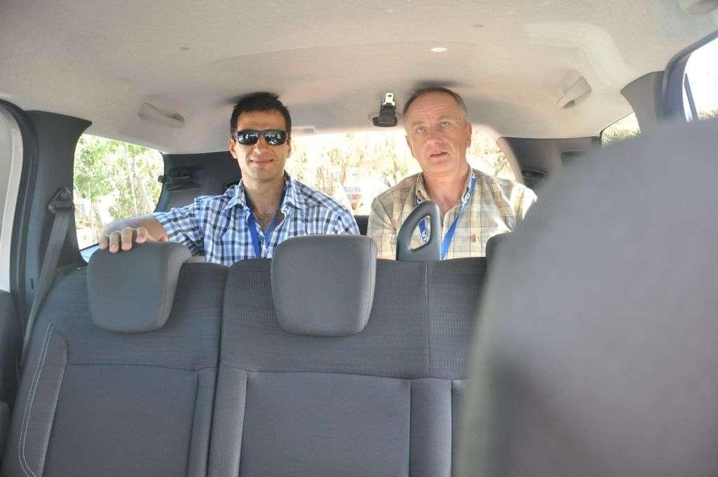 Będziemy złośliwi – ja z kolegą po fachu mamy po 2 metry wzrostu i postanawiamy przetestować tylne fotele. Bez problemu przeciskam swoje 2 metry przez duży otwór. Kolega również zajmuje miejsce obok bez problemu. Najlepsze jednak przed nami – fotel drugiego rzędu ponownie zajmuje swoje miejsce, a my… siedzimy sobie wygodnie dalej. Kolana nie są przy uszach, a sufit ledwo dotyka głowy. Imponujący wynik, zważając na to, że w normalnej eksploatacji nikt przecież nie posadzi dwumetrowców na „dostawce”. Uwagę można mieć tylko do sposobu montażu foteli – nie chowają się one w podłodze, jak w innych 7-osobowych autach, tylko składają się jak w wersalce, lądując za oparciami tylnej kanapy. Rozwiązanie takie jest niewątpliwie tanie, lecz brak możliwości rozłożenia tylko jednego fotela z tyłu oraz brak możliwości dzielenia drugiego rzędu foteli, może być nieprzyjemną niespodzianką w późniejszej eksploatacji.