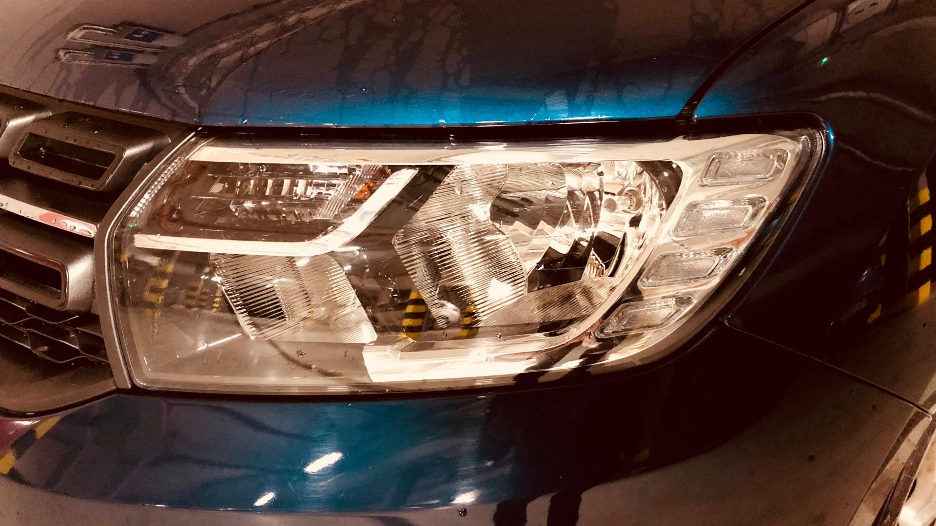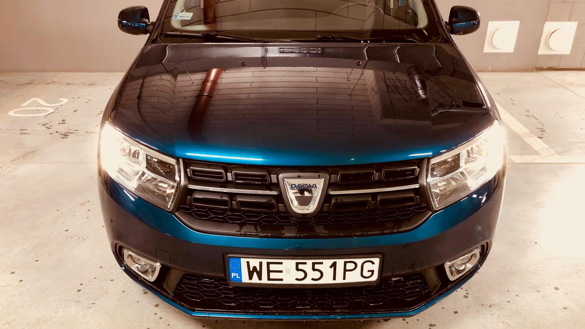 Testowany model jest już po faceliftingu, który z zewnątrz wprowadził trochę świeżości. Z przodu najważniejszą zmianą są reflektory – posiadają teraz ledowe światła do jazdy dziennej. A co oprócz tego? W tej cenie nie liczmy na niezliczoną ilość przetłoczeń i załamań. To auto ma być proste i jak najlepiej wtapiać się w otoczenie. Widzimy zatem grill z prostokątnymi elementami i w naszej wersji lakierowany zderzak (w podstawie dostajemy czarne matowe wykończenie). Mimo cięcia kosztów, Dacia próbowała w jakiś sposób poprawić wygląd swojego mieszczucha, dodając kilka chromów tu i ówdzie.