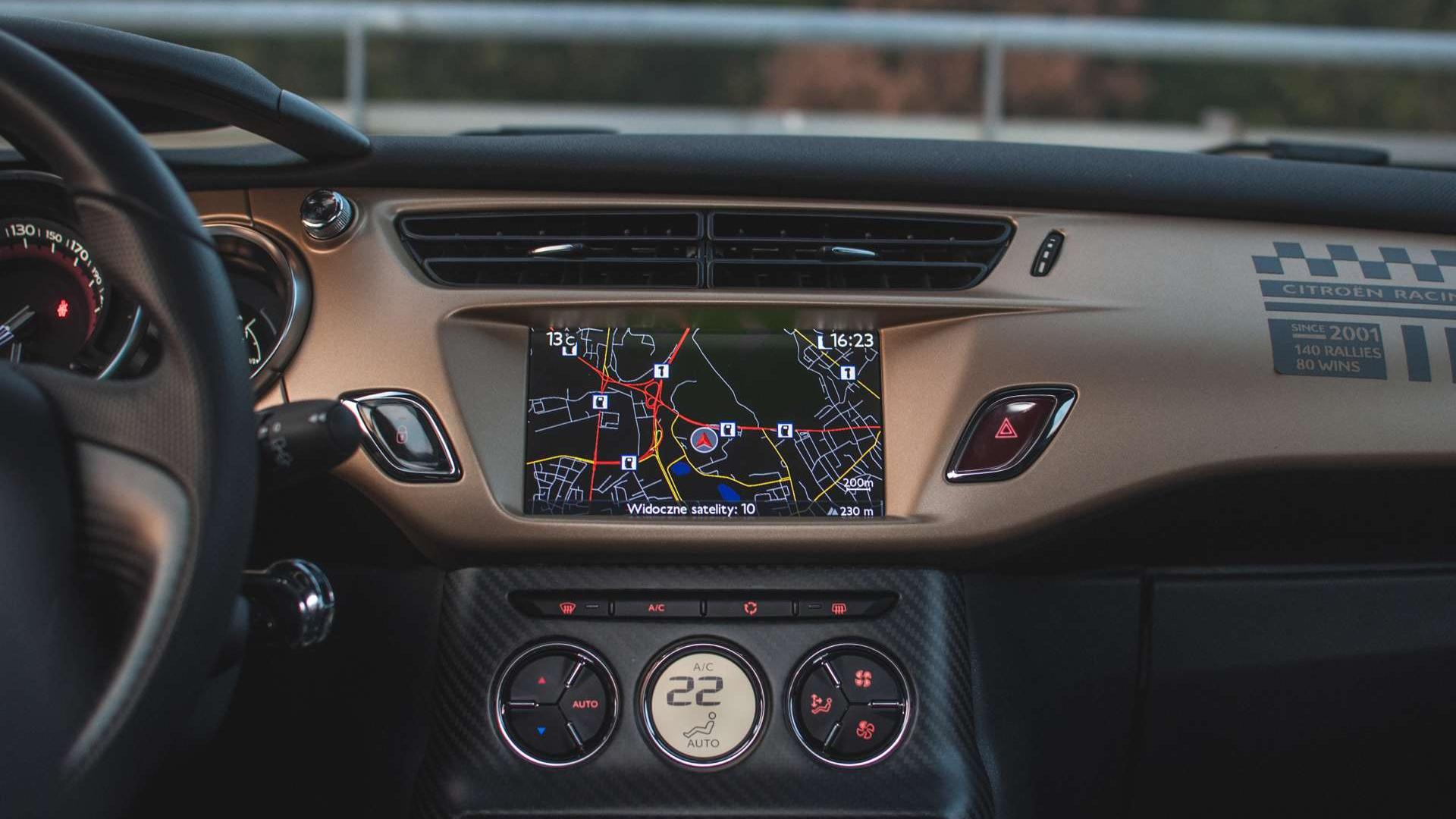 Na wstępie należałoby zaznaczyć, że do testu dostaliśmy wersję, która nie jest już dostępna w ofercie. Spokojnie, wróci. Czeka na odświeżenie wnętrza, a raczej dodanie tego samego wyposażenia, które już teraz znajdziemy w nieco słabszych odmianach DS3. Citroen, to znaczy DS, wytrąca mi zatem oręż z ręki. System multimedialny z nawigacją i 6,5-calowym ekranem ma raczej toporny interfejs i można go obsługiwać wyłącznie za pomocą przycisków i pokrętła pod nim. W nowej wersji dostaniemy 7-calowy ekran dotykowy.