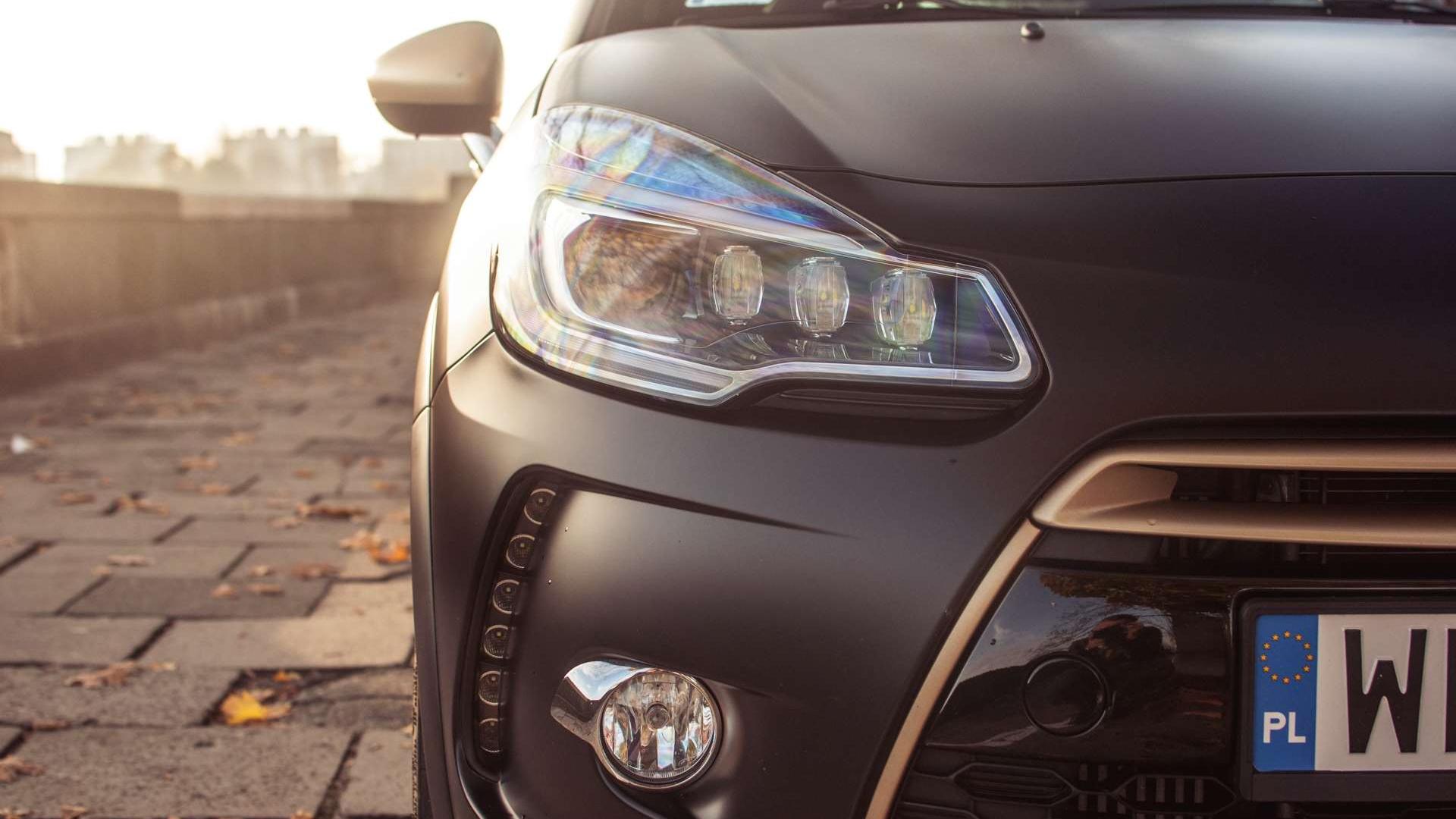 Front DS3 jest raczej wizualnie ciężki. Duża, pionowa powierzchnia, którą tworzy grill i zderzak zaokrągla się w stronę maski i wędruje na dach. Charakterystycznym elementem projektu jest "lewitujący" dach, który tak kształtem, jak i kolorem odcina się od reszty nadwozia. Wśród sportowych dodatków znajdziemy właśnie przeprojektowane zderzaki, progi, spoiler dachowy i 18-calowe złote felgi. Fajnym urozmaiceniem są dynamiczne kierunkowskazy i tylne lampy LED z efektem głębi.