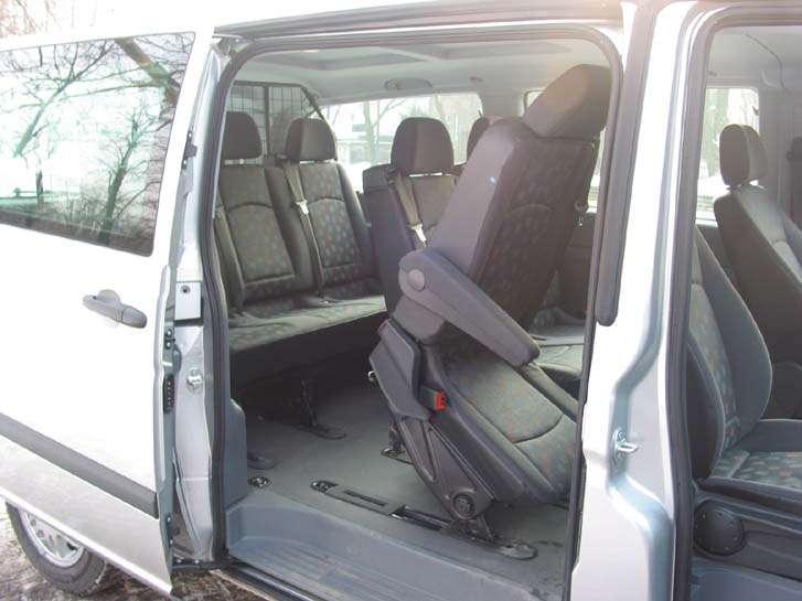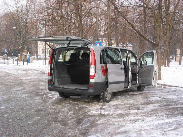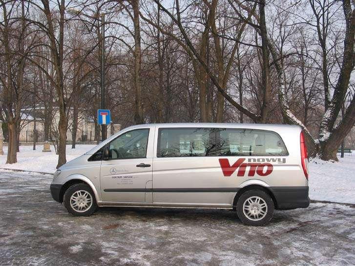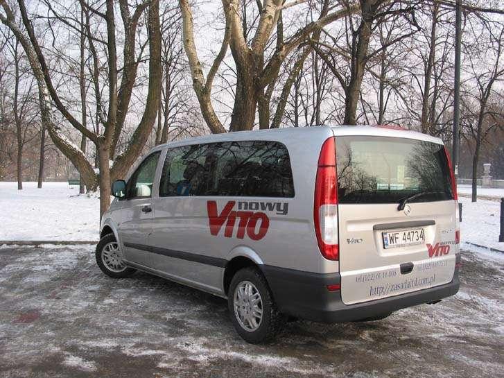 Nowe Vito otrzymało atrakcyjniejszą stylistykę, podkreślającą jednocześnie dynamizm i elegancję. We wnętrzu bez trudu dostrzeżemy nową, ergonomicznie rozplanowaną deskę rozdzielczą. Do wykończenia wnętrza użyto materiałów dobrej jakości a dla utrzymania porządku znalazło się tutaj także wiele schowków, które są szczególnie niezbędne w tego typu aucie. Testowe Vito występowało w wersji 9-osobowej, z najdłuższym rozstawem osi (3430 mm). Zajmowanie miejsca na tylnych fotelach nie sprawia żadnych trudności, dzięki daleko odsuwanym bocznym drzwiom a także pochylaniu fotela drugiego rzędu. Jednocześnie w tej wersji, przy zajętych wszystkich miejscach pozostaje do dyspozycji przedział bagażowy o pojemności 928 litrów.