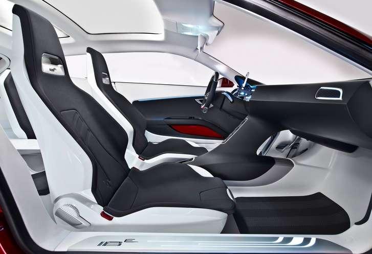 Wnętrze także jest zdecydowanie sportowe, głównie dzięki kubełkowym fotelom z białymi, plastikowymi skorupami. Gruba kierownica w dolnej części nieco spłaszczona także ma zdecydowanie sportowy charakter, choć część elementów wygląda na wykonane z dwukolorowej sklejki, co kojarzy się z eleganckimi, klasycznymi jachtami. Przed kierownicą już nie ma klasyki – sama nowoczesność. Rolę tablicy rozdzielczej pełni duży wyświetlacz, a część deski rozdzielczej przed kierowcą jest wyznaczona obrysem neonowych świateł. W tej przestrzeni znalazła się również szuflada z miejscem na zamontowanie smartfona, takiego jak iPhone. W nowych zestawach informatycznych samochodów tego typu telefony nie służą tylko jako magazyny na pliki MP3. Oczywiście można dzięki odtwarzać muzykę ze smartfona, wykorzystując przy tym przełączniki wielofunkcyjnej kierownicy i wyświetlacz tablicy rozdzielczej. Można także wykorzystywać podczas jazdy nawigację telefonu.