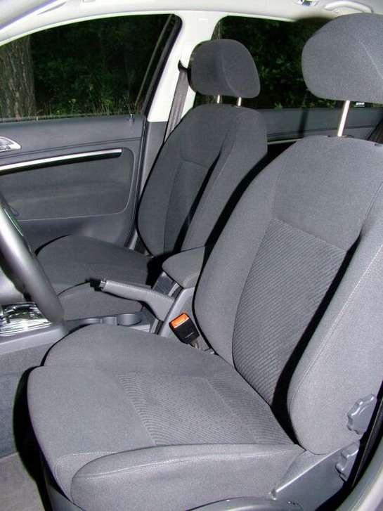 Lekcję z ergonomii miejsca kierowcy odrobiono na 5-. Fotel jest obszerny, w sam raz dla Niemców wcinających frankfurterki, rozsądnie twardawy, oczywiście regulowany na wysokość, z możliwością dostrojenia podparcia lędźwi. Nieźle trzyma na zakrętach, a na dłuższą metę okazuje się wygodny. Niestety, rosłym osobnikom (>185 cm) zabraknie kilku centymetrów zakresu regulacji wzdłużnej. Korelacja pedałów i dźwigni jest bez zarzutu, a lokalizacja i obsługa włączników czysto intuicyjna, łatwa do opanowania bez instrukcji. Otwieranie wlewu paliwa lub pokrywy bagażnika, blokowanie centralnego zamka od środka lub tylnych szyb - to wszystko robią przyciski albo dźwigienki w drzwiach kierowcy. Prosty komputer pokładowy, łatwo sterowany przyciskiem na dźwigni kierunkowskazów, śledzi średnie lub chwilowe zużycie paliwa, mierzy czas jazdy, dystans podróży i średnią szybkość. Jego wyświetlacz, znany z innych aut koncernu VW, przedziela wielkie zegary stylizowane na morskie chronometry: obrotomierz i prędkościomierz. Ten drugi osobliwie skalowany, do 120 km/h co 20 km/h, a powyżej, co 30 km/h. Konsola środkowa jest w nocy subtelnie podświetlona przez czerwoną lampkę z sufitu, nie absorbującą wzroku kierowcy.