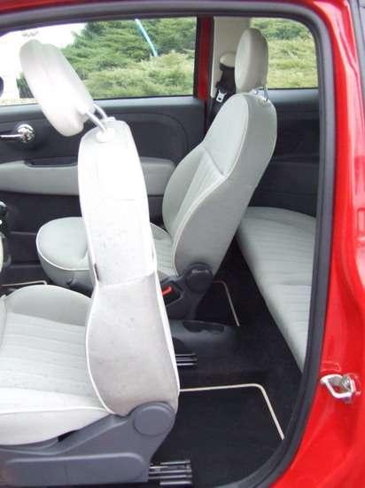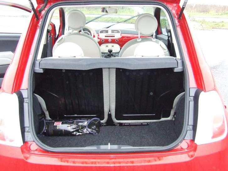 Jak podróżuje się 500-ką? Wygodnie, przynajmniej z przodu – w porównaniu z Mini Cooperem, wręcz komfortowo. Osoby o średniej budowie ciała mają dużo miejsca z przodu, z wyjątkiem przestrzeni dla prawej nogi kierowcy na wysokości kolana, którym uderza się o obudowę wokół dźwigni zmiany biegów. Trochę gorzej jest w drugim rzędzie, gdzie jednak bez problemu zmieszczą się dwie osoby średniego wzrostu, a nawet nieco wyższe. Bagażnik nie należy do dużych (185 l), ale na weekendowe wycieczki będzie wystarczający.