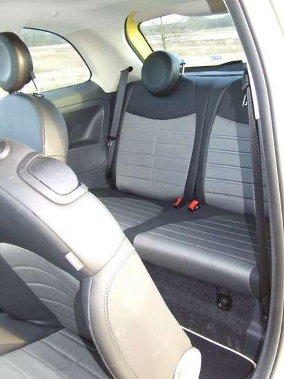 W porównaniu z Pandą 500-ka jest ciaśniejsza i siedzi się bliżej siebie. Ta ostatnia cecha dla niektórych stanowić może zaletę, zwłaszcza w czasie spotkania z wybranką albo wybranym. O ile z przodu zmieszczą się bez problemu nawet otyli o wzroście nawet powyżej 190 cm, to z tyłu nie powinny jeździć osoby wyższe niż 165 cm – w przeciwnym razie będą uderzać głową w listwę po wewnętrznej stronie tylnej klapy bagażnika, względnie w sufit. Także bagażnik ma dość umiarkowaną pojemność – 185 l wystarczy tylko na drobne zakupy. W tej klasie to standard, ale pochyłe ścianki sprawiają, że problemy pojawiają się już przy kilku zgrzewkach lub kartonach (podobnie jak np. w Fordzie Ka). Nie pozostaje wtedy nic innego jak złożyć oparcia tylnych siedzeń i uzyskać ponad 610 l.