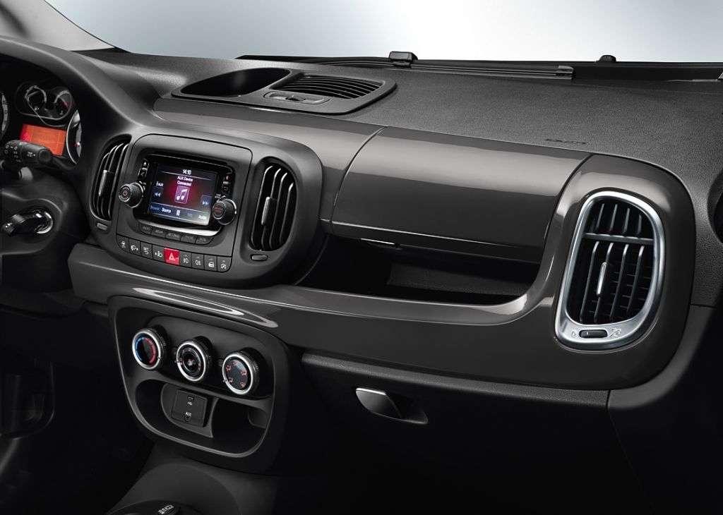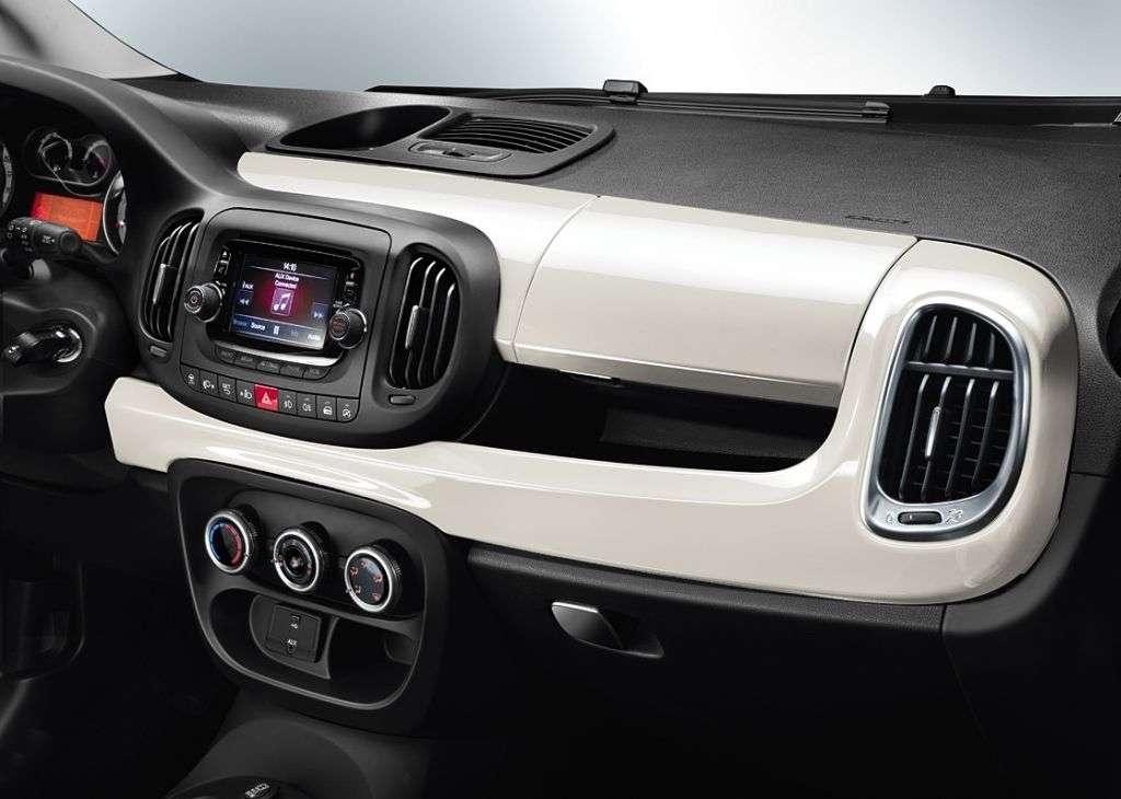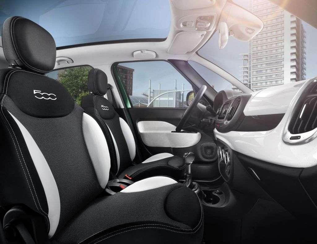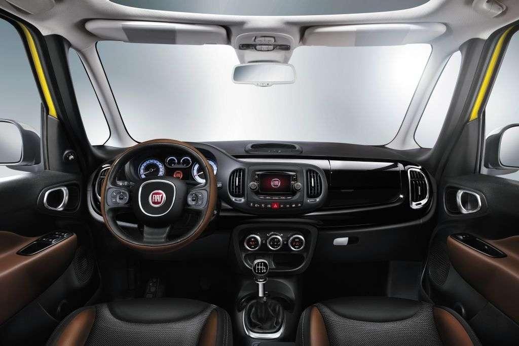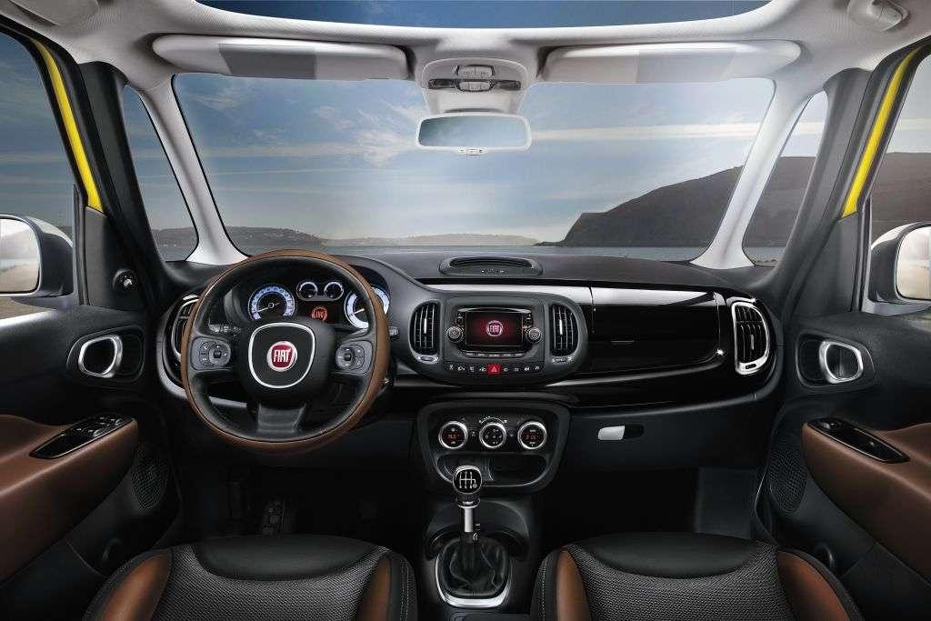 Wnętrze prezentuje się ładnie, nowocześnie, choć może odrobinę zbyt „młodzieżowo”. Króluje materiałowa tapicerka z kilkoma wstawkami ze skóry ekologicznej w dwóch kombinacjach. Możemy wybrać tkaninę Magnesio Grey ze wstawkami z eko-skóry lub tradycyjną czarną tkaninę z białymi akcentami. Warto również wspomnieć o bagażniku, który ma pojemność 455 litrów przy komplecie pasażerów na pokładzie, a więc całkiem przyzwoicie. Jeśli chodzi o kolory nadwozia, producent przygotował kilka lakierów do wyboru: biały, ciemnoszary metalik, beżowy, czerwony, zielony metalik oraz reprezentatywny i reklamowany przez Fiata, jako zupełnie nowy i ekskluzywny dla tego modelu – żółty. Klienci mogą również zdecydować się na lakierowany na biało lub czarno dach. Trzeba przyznać, że Fiat 500L Trekking w niektórych kombinacjach kolorystycznych, z dużymi felgami i wszystkimi dodatkami prezentuje się bardzo przyjemnie.