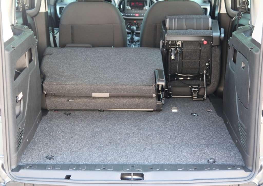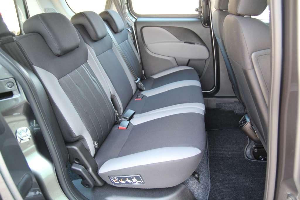 W 5-osobowym Doblò można cieszyć się aż 790-litrowym bagażnikiem z nisko położonym progiem. Złożenie kanapy zajmuje kilka sekund. Pochylamy oparcia, wraz z siedziskami podnosimy je do pionu i uzyskujemy 3200 l przestrzeni z płaską podłogą. To najlepsze wyniki w segmencie. Tylną część kabiny można dostosować do indywidualnych preferencji. Oferowane są dwa dodatkowe fotele (4000 zł), uchylne szyby dla trzeciego rzędu (100 zł; składowa pakietu Family) czy zastępująca roletę półka (200 zł), która udźwignie do 70 kg.