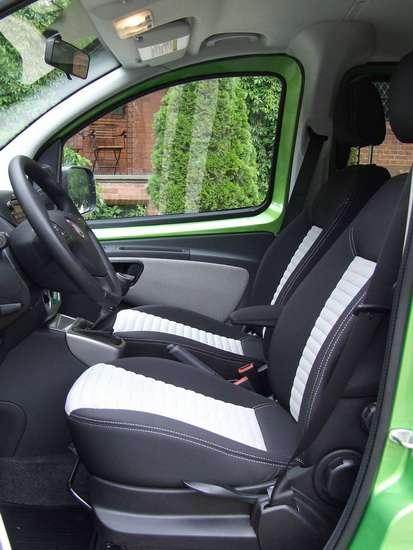 Do samochodu wsiada się i wysiada wygodnie, zwłaszcza do/z tyłu, dzięki suwanym drzwiom po obu stronach, standardowych we wszystkich wersjach. Trochę gorzej z miejscem za kierownicą – aby nie opierać się kolanami o deskę rozdzielczą trzeba odsunąć fotel do tyłu i maksymalnie „wyciągnąć" kierownicę. Mało miejsca mamy na prawe kolano, obijające się o szeroką konsolę środkową. Duża powierzchnia przeszklona i spore lusterka zapewniają dobrą widoczność, ale jeszcze lepiej gdyby były wyższe i pionowe, jak w typowych autach dostawczych (to optymalne rozwiązanie do wysokich pojazdów). Po otwarciu jednoczęściowej klapy mamy wygodny dostęp do bagażnika. Uważać na głowę muszą jedynie osoby o wzroście 190 cm i więcej. Pojemność bagażnika wynosi 329 l, a funkcjonalność przewozową zwiększają składane i wyjmowane fotele w drugim rzędzie, co umożliwia przewiezieniu ładunku o objętości 2500 l. Dla porównania Roomster ma odpowiednio 530 i 1700 l. Z pewnością optymalne wykorzystanie przestrzeni Qubo ułatwia prostokątny kształt.