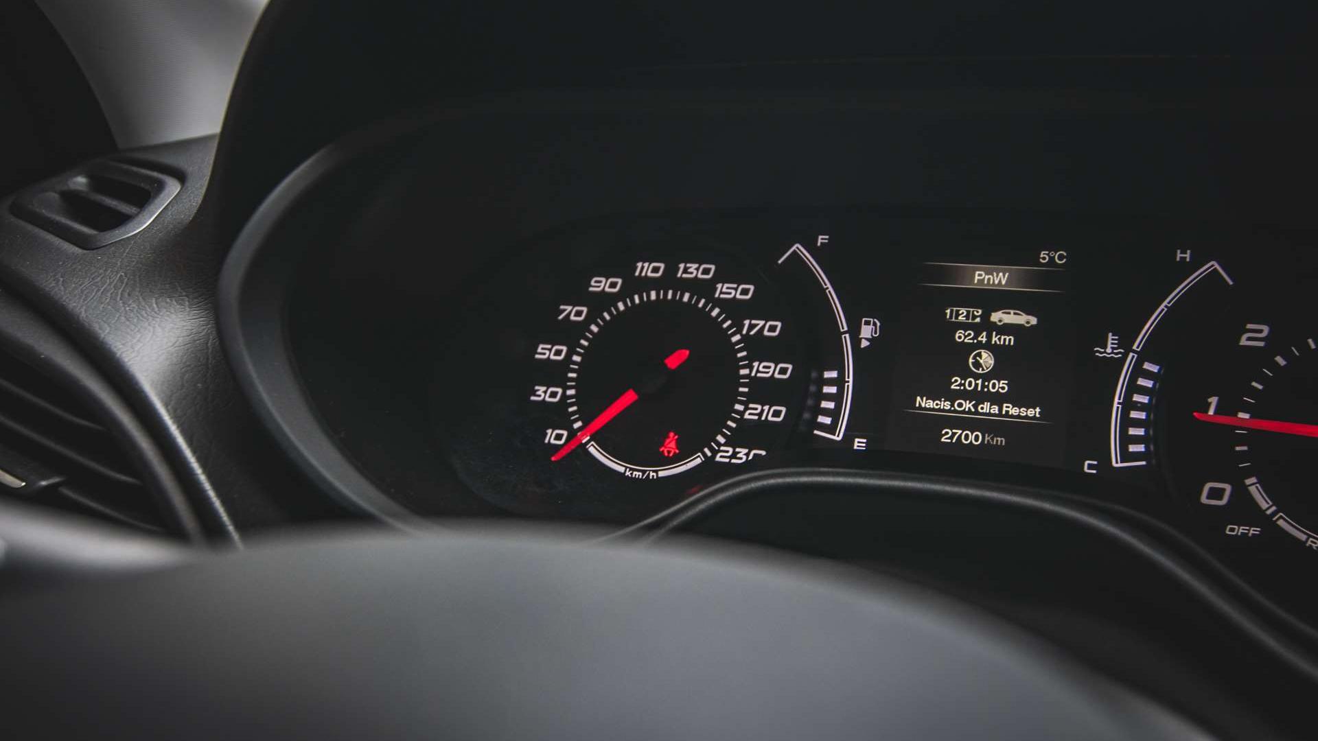 Dizajn środka ma nawiązywać do projektu nadwozia. Krawędzie wlotów w przednim zderzaku i tylne lampy narysowano w kształcie litery „C”, co zauważymy też w środku. Motyw ten przejawia się na kierownicy, na krawędzi zegarów i wokół ekranu systemu multimedialnego. Pojawia się tu jednak pierwszy element budżetowy - obrotomierz jest identyczny w wersjach z silnikami benzynowymi i Diesla. Wybaczamy, bo i tak wygląda dobrze.