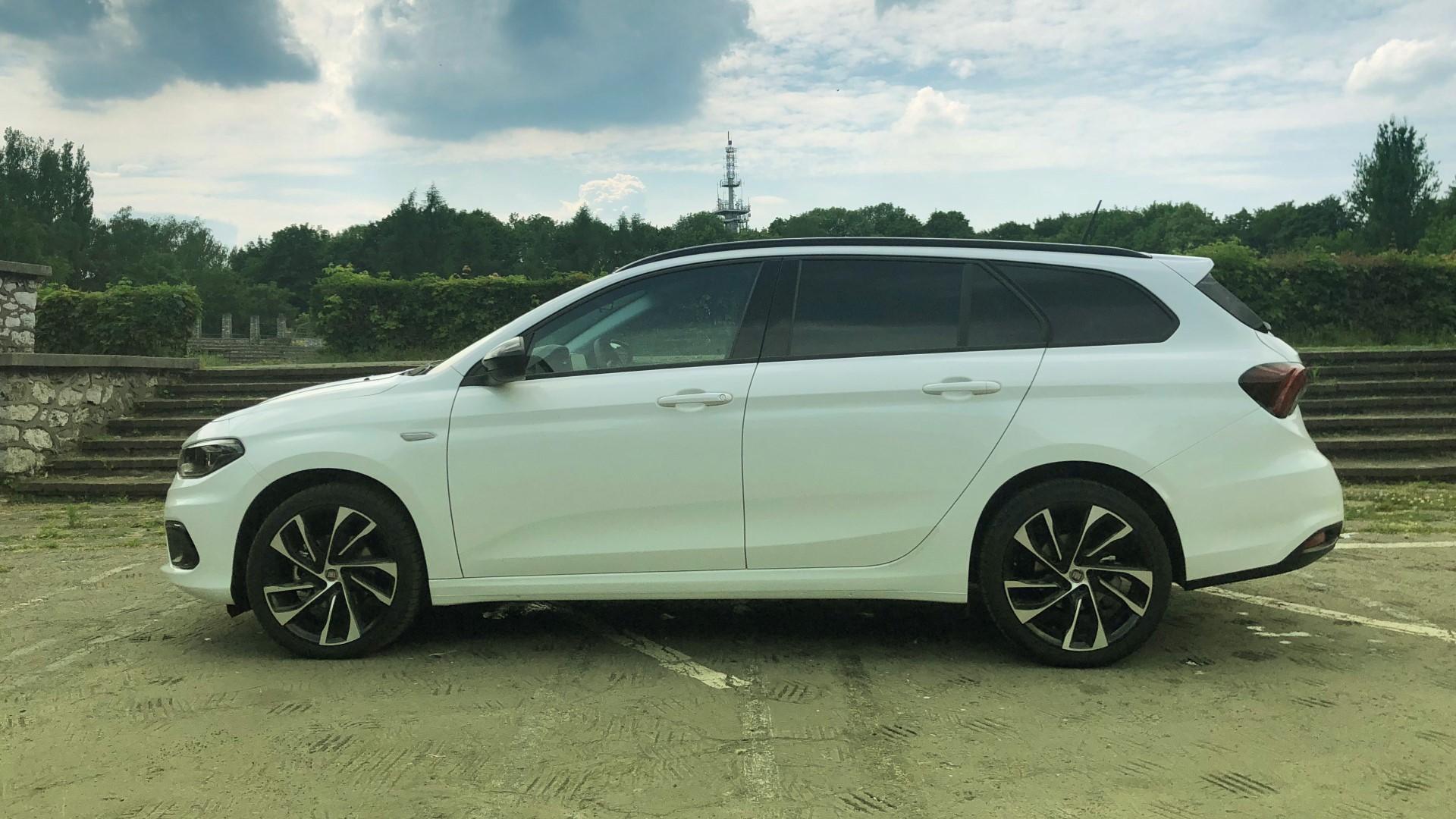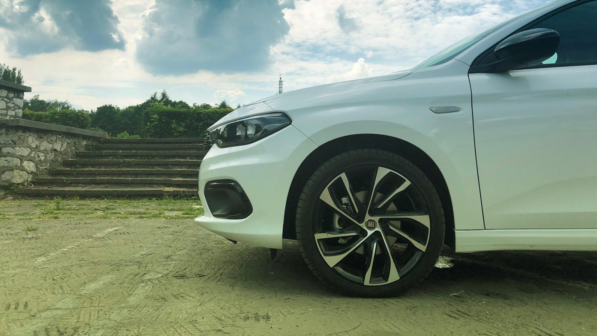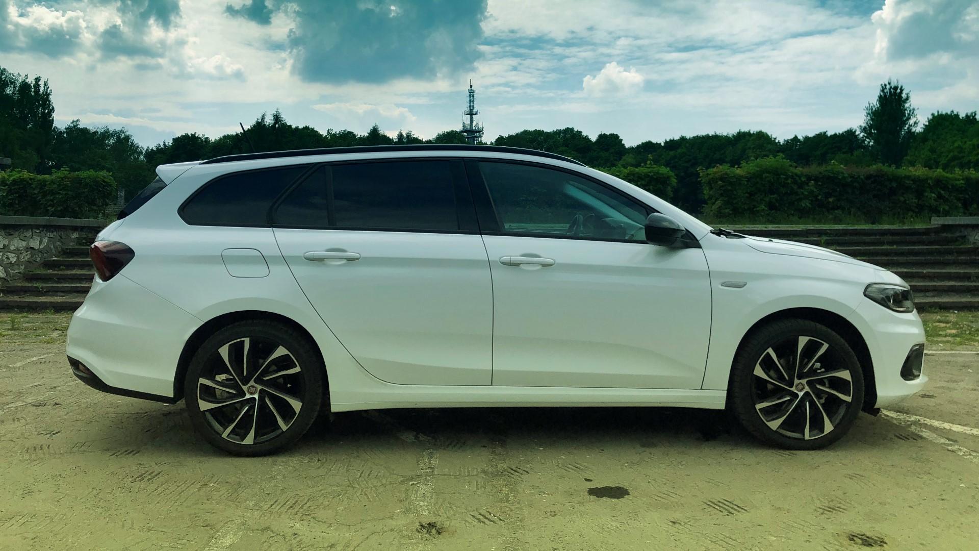 Pobudka! Szybki prysznic, potem śniadanie. Ubieramy się i wychodzimy z domu. Milion myśli w głowie. Otwieramy garaż, a tam stoi Fiat Tipo. Myślę, że większość osób ucieszyłaby się z tego widoku. W końcu ten model wygląda naprawdę dobrze. W kwestii projektu ciężko się do czegoś przyczepić. Mało które auto w tej cenie wzbudza takie poruszenie wśród przechodniów – zwłaszcza w testowanej przez nas wersji S-Design. Jej czarne dodatki świetnie kontrastują z białym lakierem nadwozia. Przypomnę tylko, że ciągle mówimy o budżetowym kombi, jednak gdy wzrok osób, czekających na przystanku, podąża za nami, w ogóle tego nie odczuwamy.