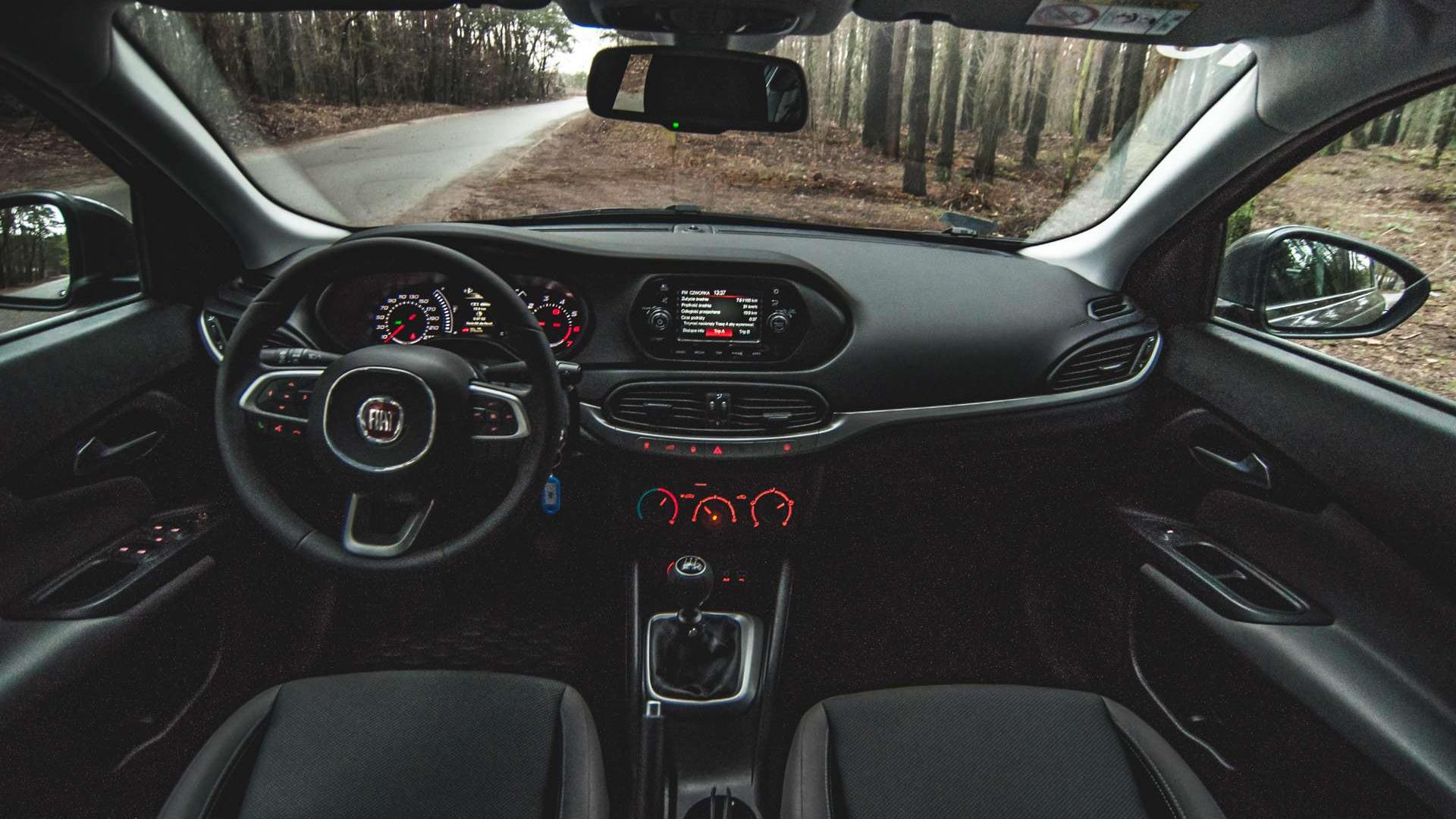 Cóż, gdzieś te ograniczenia kosztów musiały się ukazać. Jeszcze nie w projekcie wnętrza, bo wygląda nieźle (jedynie pozycja środkowych nawiewów jest nienaturalnie niska), ale w samych materiałach, z których zostało wykonane. Oczywiście, drzwi pokrywają twarde plastiki, w większości miejsc jest twardo, ale nic nie skrzypi podczas jazdy. Na postoju, kiedy będziemy wszystko naciskać, również nie jest źle. Odkryjemy, że w całej górnej części deski rozdzielczej, pod wierzchnią warstwą jest nawet pianka. Pytanie, jak będzie się to sprawować, kiedy wnętrze się nagrzeje - kiedy temperatura była niska, nie było się do czego przyczepić, jeśli nadal mamy na uwadze cenę modelu bazowego. Nie tak dawno temu jeździłem Dacią Duster w jednej z droższych konfiguracji, a wydaje mi się, że jednak prezentowane Tipo ma lepiej wykonane wnętrze.