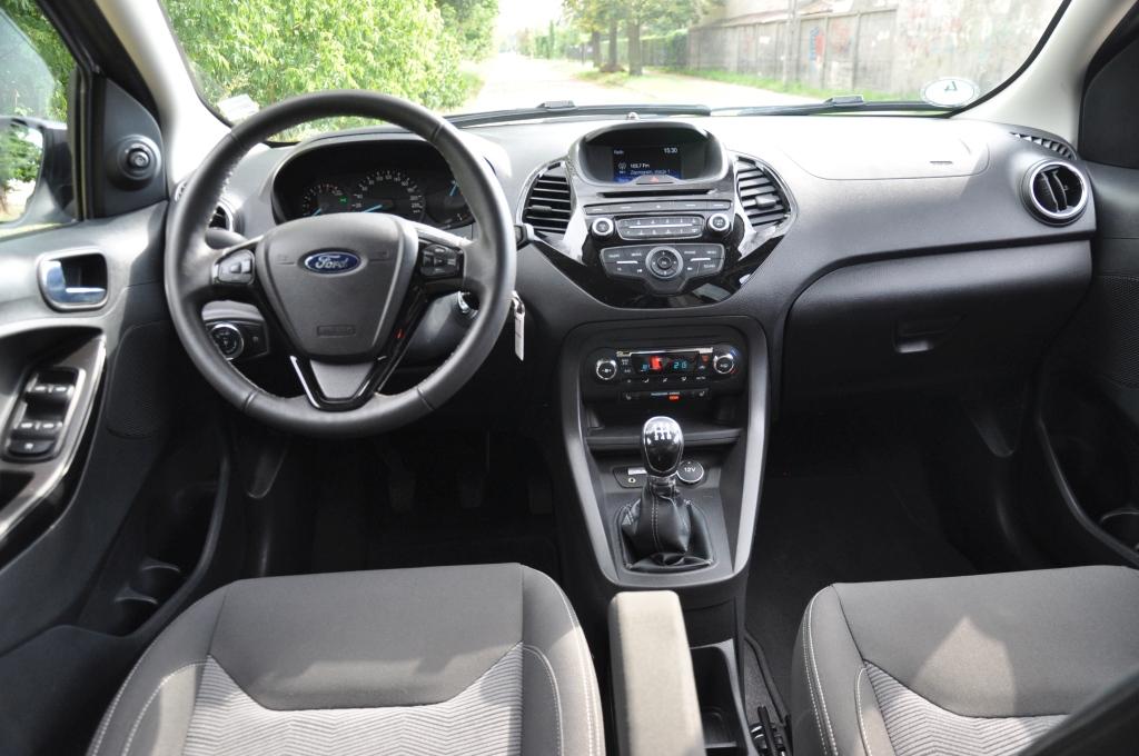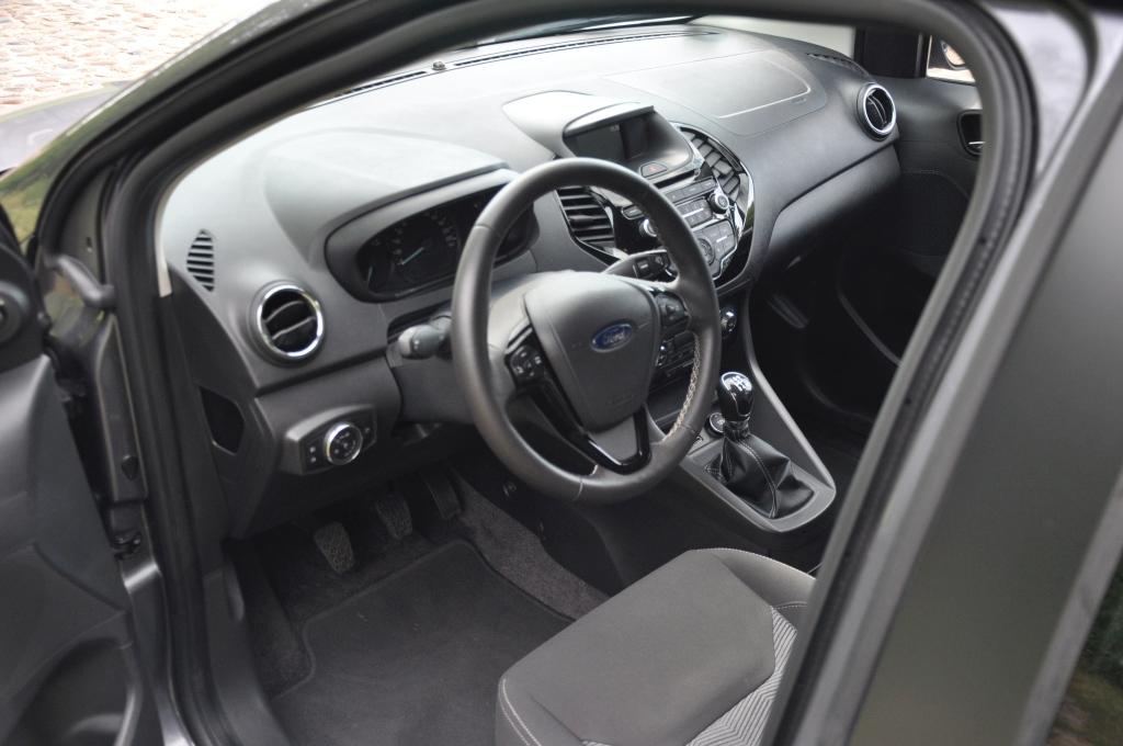 Pierwsze wrażenia są bardzo pozytywne. Silnik ochoczo zabiera się do pracy, pozwalając na płynną jazdę w mieście. Skrzynia biegów ma tylko pięć przełożeń, ale jej mechanizm jest bardzo precyzyjny i nie sugeruje, że mamy do czynienia z samochodem budowanym z tanich klocków. Choć jest to auto typowo miejskie, Ka Plus nie boi się dłuższej trasy, a co więcej - oferuje komfortową podróż. Pomaga w tym dobre wyciszenie kabiny, czy podłokietnik w fotelu kierowcy. Tunel środkowy ma sporo przegródek na drobiazgi i kubki z napojami, a przed dźwignią zmiany biegów umieszczono półkę np. na telefon, zaś pod nią mamy gniazdo 12V i wejście USB.