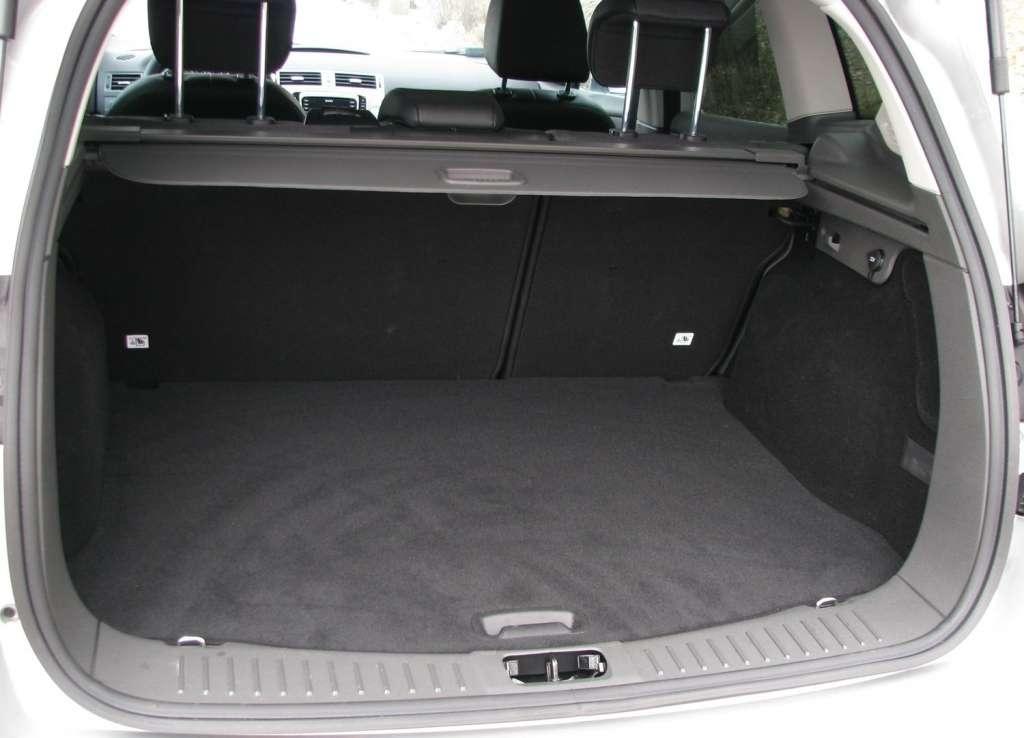 Przednie fotele są wygodne i zapewniają dobre trzymanie na boki. Z tyłu miejsca jest sporo, ale przy odsunięciu przedniego fotela dla pasażera o wzroście 180 cm, równie wysoka osoba siadający na tylnej kanapie ma już kolana w oparciach przednich foteli. Ciekawa jest tapicerka tego samochodu. Na ciemnym tle wyraźnie odcinają się białe przeszycia i białe pasy dzielące optycznie siedziska na pół. Siadając na tylnej kanapie miałem za plecami bagażnik o pojemności 360 l, który składając kanapę można było powiększyć do 1405 l. Szkoda, że kanapa nie jest przesuwana, wówczas można by lepiej zarządzać dostępną przestrzenią.