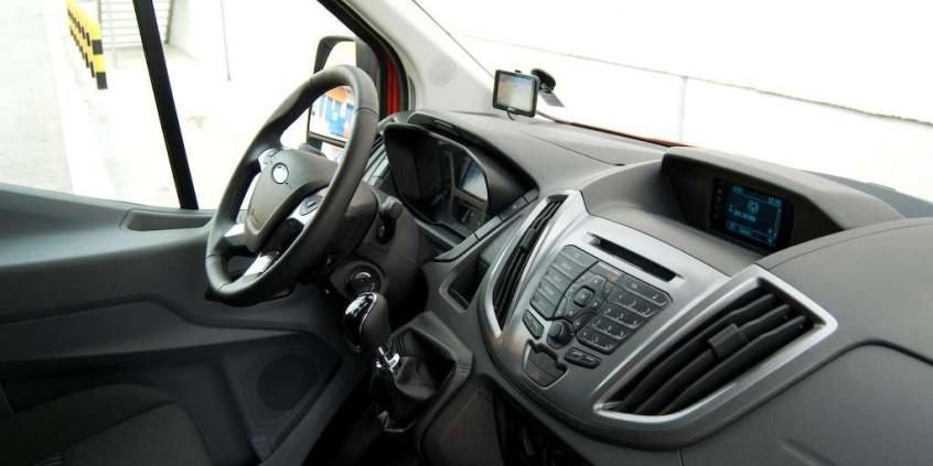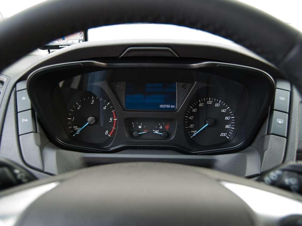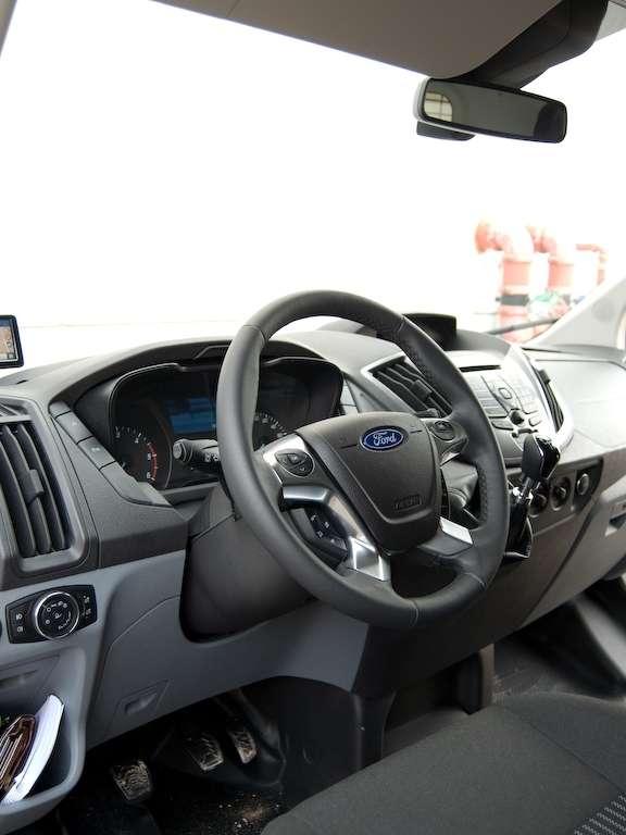 Projekt kokpitu jest doskonale znany z samochodów osobowych Forda. Znalezienie wygodnej pozycji za kierownicą nie stanowi problemu. Nad deską rozdzielczą umieszczono schowek z wyjściem 12V. To przemyślane rozwiązanie, biorąc pod uwagę możliwość podpięcia nawigacji czy wideorejestratora bez wijących się po całym wnętrzu kabli. Plus należy się także za zaprojektowanie małego załamania w plastiku przy drążku zmiany biegów, gdzie zmieścimy nawet największego smartphone’a. Producent przewidział również sporo miejsca pod siedziskiem pasażera.