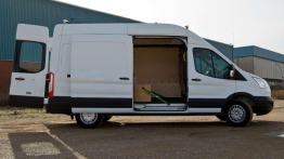 Obecny na rynku od 2006 roku Transit nieco się zestarzał, dlatego w kwestii stylizacji postawiono na gruntowne zmiany. Przód pojazdu nawiązuje do designu samochodów osobowych, nie tylko Forda, ale i... Aston Martina. Patrząc na Transita z boku trudno nie zauważyć ogromnej ilości przetłoczeń. Niewielkiej lekkości dodaje wznosząca się linia okien. Muszę przyznać, że przy pierwszym kontakcie opisywany Ford wydaje się odrobinę dziwny, po godzinie przestaje szokować, by po kilku dniach stać się poprawnym stylistycznie dostawczakiem.