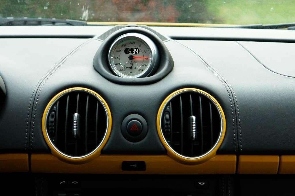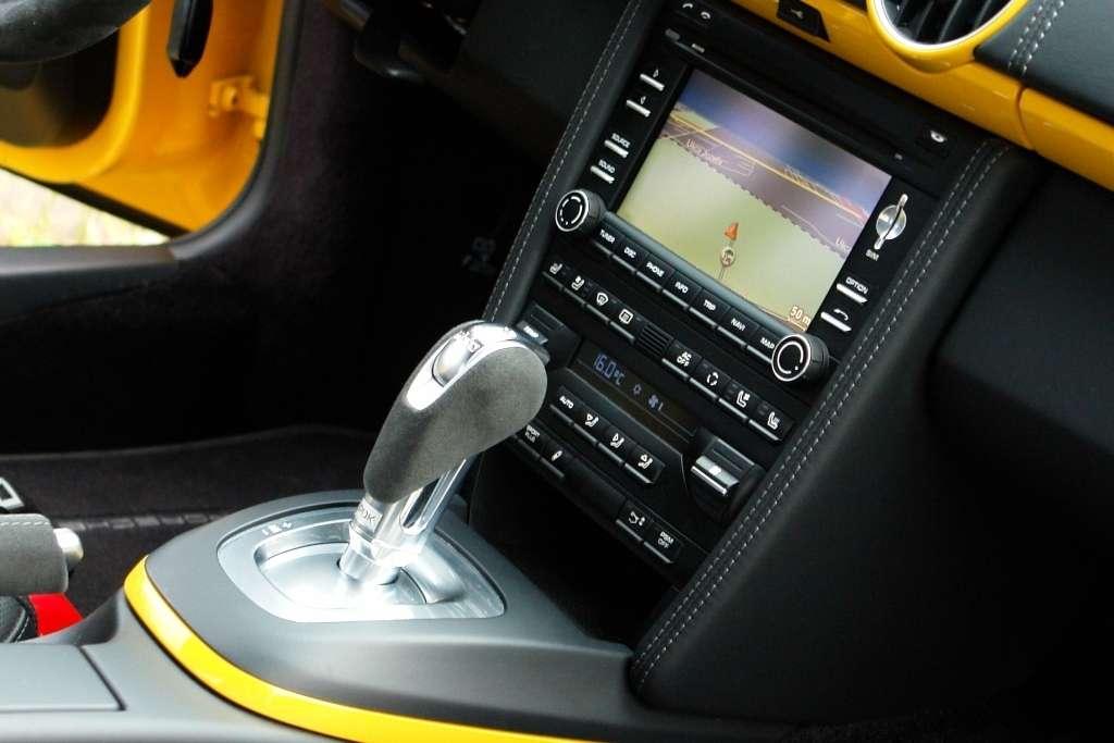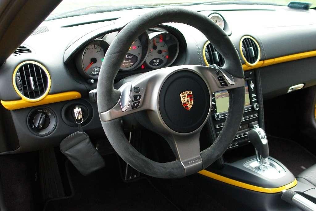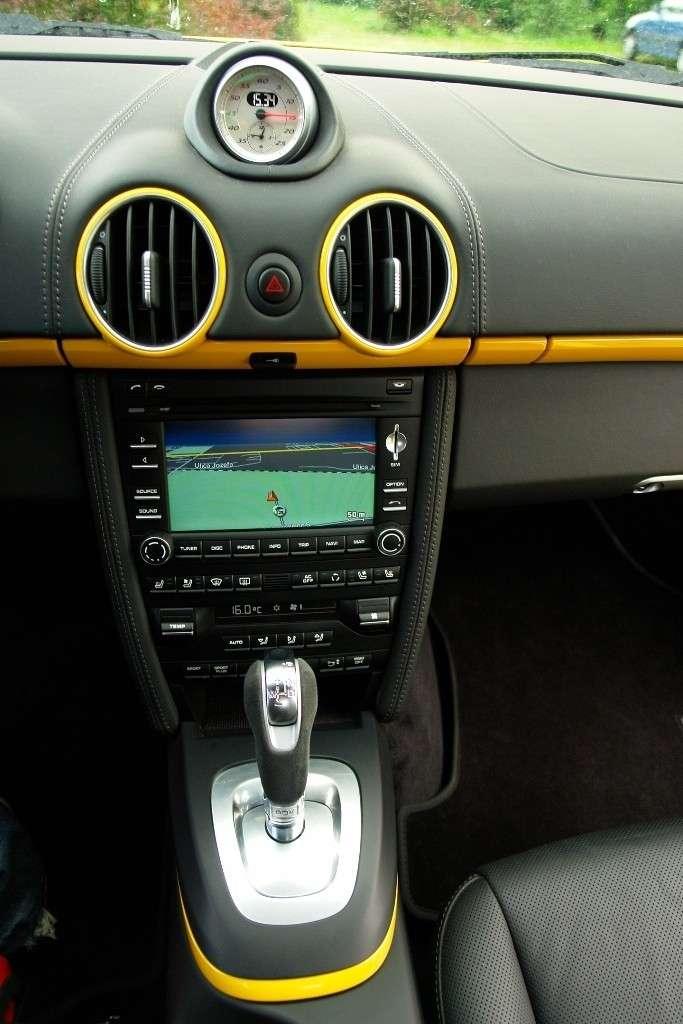 Jest nim trójramienna sportowa kierownica której wieniec w tym przypadku obito odporną na poślizg alcantarą. W takim aucie jak Cayman chwytać ją należy jedynie w odpowiedniej pozycji z kciukami spoczywającymi na zewnętrznej. Zważywszy na dziki potencjał niemieckiego gada to niezwykle ważna kwestia. Podobnie zresztą jak przyjęcie odpowiedniej pozycji w regulowanym elektrycznie wygodnym fotelu.