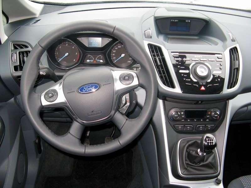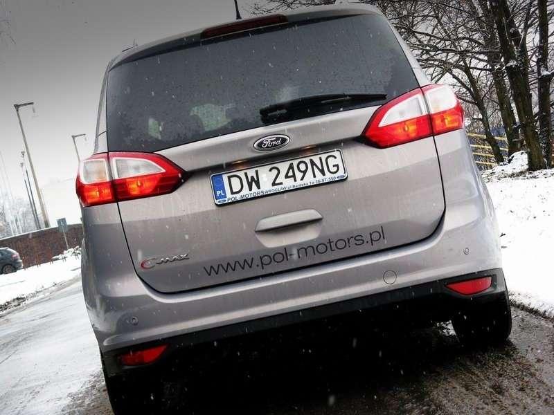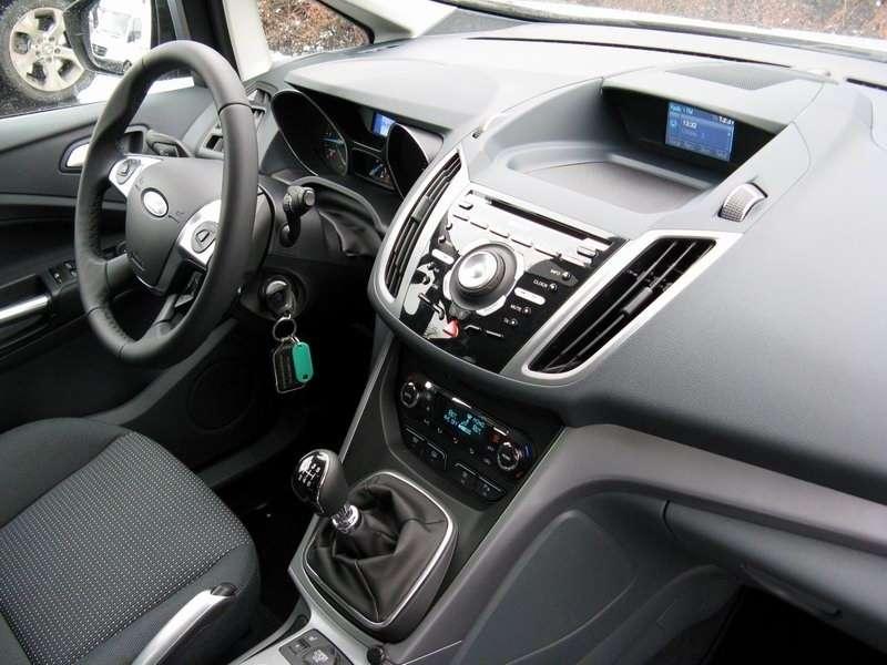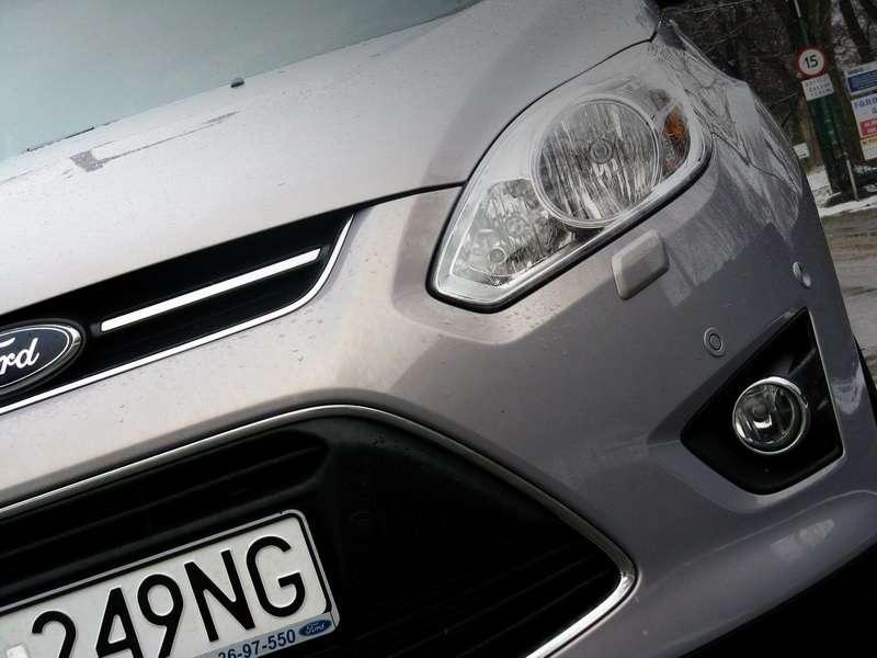 Ford przyłożył się w wielu kwestiach, bo nie dość, że kabina jest nieźle wyciszona, to jeszcze całkiem bezpieczna. I to nawet w najtańszych wersjach. ABS, przednie, boczne i kurtynowe poduszki powietrzne to standard. Cieszą też miłe dodatki – diodowe oświetlenie wnętrza, korek wlewu paliwa zintegrowany z klapką, czy za dopłatą w specjalnych pakietach – automatycznie składane lusterka po zamknięciu auta, czujnik „martwego pola” i znana z Fordów podgrzewana przednia szyba. Swoją drogą – wiele osób martwi się, że włókna grzewcze, które są w niej zatopione tak pogarszają widoczność, że zamiast do garażu można niechcący wjechać do Odry. Spokojnie – są widoczne, ale nie przeszkadzają podczas jazdy. Do tego C-MAX jest idealnym przykładem na to, że Niemcy potrafią iść z duchem czasu i zlecić wizualny projekt wnętrza komuś, dla kogo skakanie ze spadochronu to jedna z form dotarcia do pracy – design jest świetny. A taka finezja oznacza, że siłą rzeczy wóz celuje w młodszych odbiorców. Jednak czy faktycznie da się połączyć ładną karoserię z przestronnością? Ciężko powiedzieć, bo wygląd, to rzecz gustu. Ale dzięki temu, że komuś chciało się obierać miesiącami kawał gliny o kolejne 0,965237mm, a nad wnętrzem czuwał ktoś, kto wiedział jak wygląda dziecko – to można powiedzieć, że się da. Efekt jest po prostu dobry.