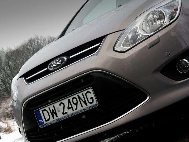 Zawieszenie to na szczęście dalej kunszt, z którego słynie Ford. Jest sztywne, ale za to nie na tyle twarde, by po opuszczeniu auta nie można było oddychać – śmiało można powiedzieć, że komfort jest zachowany. Jednak z racji tego, że wóz jest dość ciężki i wysoki, to czuć, jak na szybko pokonywanych łukach nadwozie się wychyla. Tylko, że to minivan – a jeździ lepiej niż niejedna „osobówka”. Najlepsza jest jednak skrzynia biegów. Za 9 000zł można mieć dwusprzęgłowy „automat”, który ponoć dobiera przełożenia tak przyjazne środowisku, że aż drzewa rosną większe. Jednak manualna, 6-biegowa przekładnia nie ma się czego wstydzić. Wystarczy pchnąć lewarek w którąś stronę, by chwile później coś w niego wstąpiło i sam wskoczył w odpowiednie miejsce. Do tego jest tak zsynchronizowany, że z silnika wyciska dosłownie wszystko, co można. Motorów swoją drogą jest sporo – chlubą Forda jest benzynowy EcoBoost, który zawiera w sobie wszystko, co modne i skomplikowane. Niską pojemność, 1.6l, turbosprężarkę, bezpośredni wtrysk paliwa i zmienne fazy rozrządu. Moc też jest niezła – 150 lub 182KM. Prostsza wersja Duratec ma już tylko 105 lub 125KM. Diesle są dostępne w dwóch pojemnościach – 2.0TDCi 115KM wyłącznie z automatyczną przekładnią PowerShift, 140KM lub 163KM. Z kolei mniejsza jednostka to 1.6TDCi o mocy 95 lub 115KM. W testowym egzemplarzu pod maskę trafił wariant 115-konny, ale C-MAX waży 1,5 tony – dlatego i tak brzmi to tak sobie. Jednak w praktyce można się zdziwić – ten silnik jest naprawdę dziwny, bo wyjątkowo dobrze radzi sobie z samochodem. Jego turbodziura powinna być gigantyczna jak co drugi wulkan na Islandii, tymczasem moc czuć już od około 1800obr./min. Co więcej – naprawdę ją czuć. Oczywiście to nie jest jednostka dla ludzi, którzy świat pojmują według zasady: „nie lubię, gdy kierowcy jeżdżą po mieście 150km/h, bo ciężko ich wyprzedzić”. Ten silnik po prostu pozwala na normalną, płynną jazdę i dopiero na 4. biegu nieco słabnie. Od 5. już trochę walczy z samochodem, choć dalej zachowuje elastyczność i jest naprawdę oszczędny. W miejskiej jeździe łatwo zmieścić się w 6.5l/100km, a na trasie – poniżej 5l/100km.