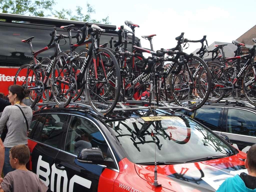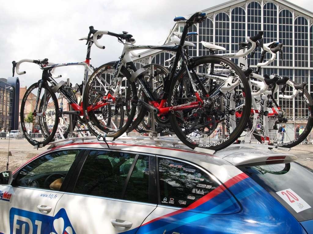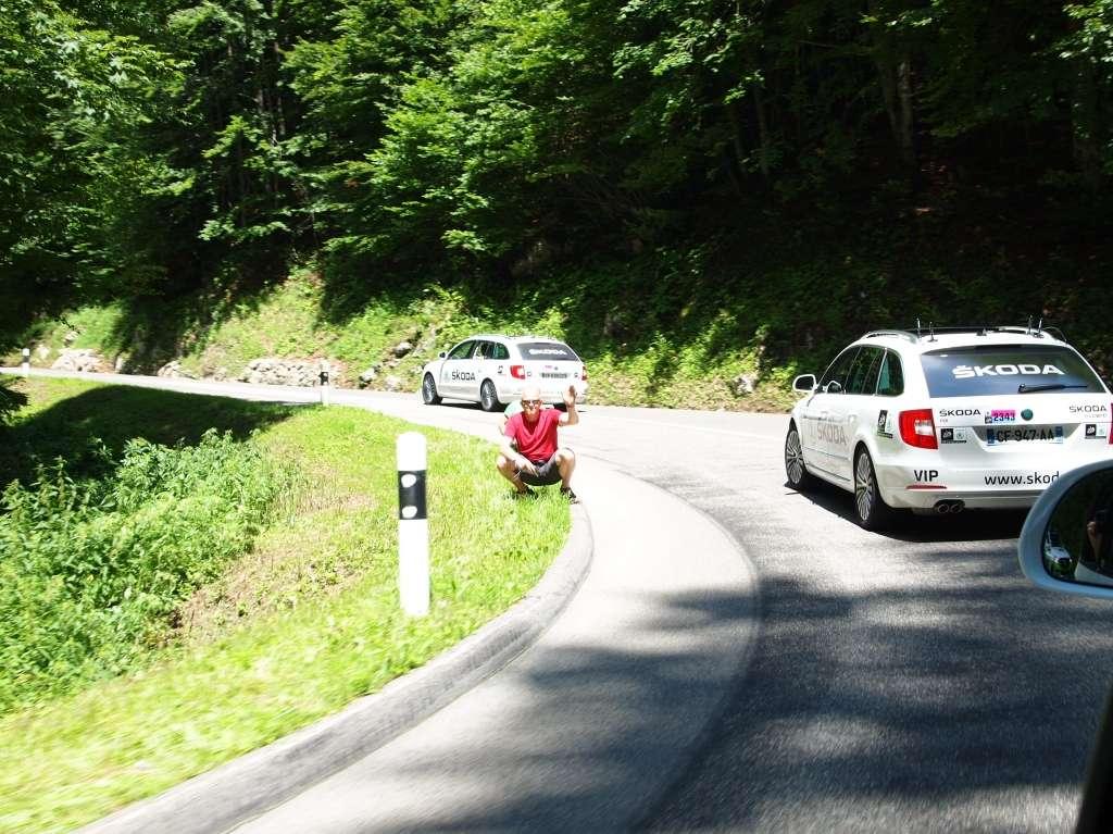 Samochody organizatorów i zespołów muszą znieść naprawdę dużo. Są narzędziami na drodze do sukcesu, a troska o ich stan jest sprawą drugorzędną. Nieustannie podróżują w tłoku, który tworzą zawodnicy, inne samochody oraz kibice. Szczególnie trudne są górskie partie etapów. Nitka asfaltu na nich bywa bardzo wąska, a pole manewru dodatkowo zawęża wspomniany tłok na trasie. Pierwszeństwo mają oczywiście zawodnicy, a kierowcy samochodów nierzadko muszą zacisnąć zęby i pokonać zniszczone fragmenty pobocza lub wyrwy w nawierzchni, które w normalnych warunkach udałoby się ominąć. Samochody są też nieustannie narażone na rysy, obtarcia lakieru, wgniotki i masę innych drobnych uszkodzeń. Nikt nie zwraca jednak na nie uwagi, gdy zajdzie konieczność szybkiego wyczepienia roweru lidera zespołu z bagażnika dachowego. Obsługa wozu technicznego staje na progu lub fotelu, jak najszybciej zdejmuje rower, po czym wraca do samochodu, by towarzyszyć zawodnikom swojej drużyny aż do mety. I tak przez trzy tygodnie, 20 etapów i blisko 3500 kilometrów...