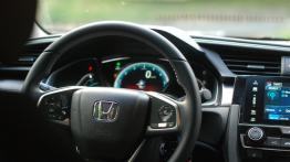 Choć oba testowane przez nas egzemplarze różniły się w kilku kwestiach: nadwozie sedan i hatchback, wersje wyposażenia (np. kluczyk klasyczny i system bezkluczykowy; tapicerka skórzana i welurowa, usztywniane zawieszenie), skrzynia manualna i automatyczna, to łączyła je jednostka napędowa. To benzynowy doładowany silnik o pojemności 1.5 litra, który generuje nominalnie moc 182 KM i moment obrotowy na poziomie 240 Nm od 1900 obr./min. Mogłoby się wydawać, że oba auta powinny oferować zbliżoną, jeśli nie taką samą, dynamikę jazdy. Zaskoczeniem było ospałe reagowanie na pedał gazu w Civicu sedanie z 6-stopniową manualną skrzynią biegów. Samochód przy próbie szybszego pokonywania zakrętów lub wyprzedzania wymagał redukcji biegu nawet o 2 stopnie. Z drugiej strony jego niewątpliwą zaletą była przyjemna elastyczność, wyraźnie zauważalna przy spokojnej jeździe. Ta też sprzyjała niskim wynikom spalania. Podczas dłuższej podróży autostradą (rzecz jasna z wykorzystaniem “autostradowych” zakresów prędkości) średni wynik oscylował w okolicach nawet 6,7 litrów na każde 100 kilometrów.