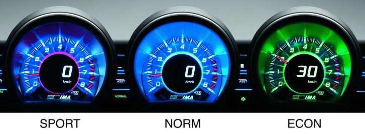 W trybie Sport przepustnica reaguje bardziej agresywnie, mocniejsze jest wspomaganie systemu IMA a wspomaganie kierownicy bardziej bezpośrednie. Podczas jazdy poza terenem zabudowanym pozwala to na czerpanie większej satysfakcji z prowadzenia samochodu.