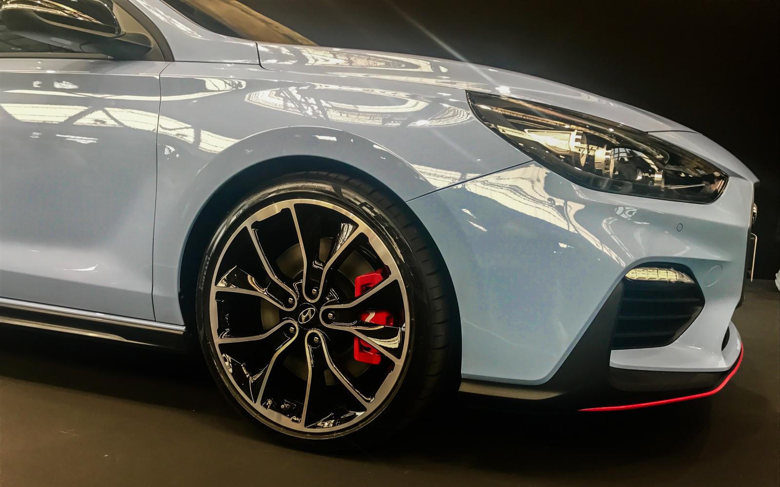 Poszerzone nadkola wypełniają 18” lub 19” aluminiowe felgi, pod którymi czerwone zaciski gryzą pokaźne tarcze, które dla wersji Performance mają bagatela 18 cali średnicy! Już z daleka widać, że pod maską bynajmniej nie śpi litrowy motorek. Taka jednostka nie potrzebowałaby także dwóch końcówek wydechów, które subtelnie wystają spod tylnego zderzaka, ani dachowego spoilera, w który wkomponowano dodatkowe trójkątne światło stopu. Dodatkowo wersja N jest niższa od cywilnej i30 o 4 lub 7 mm (w zależności od rozmiaru felg).